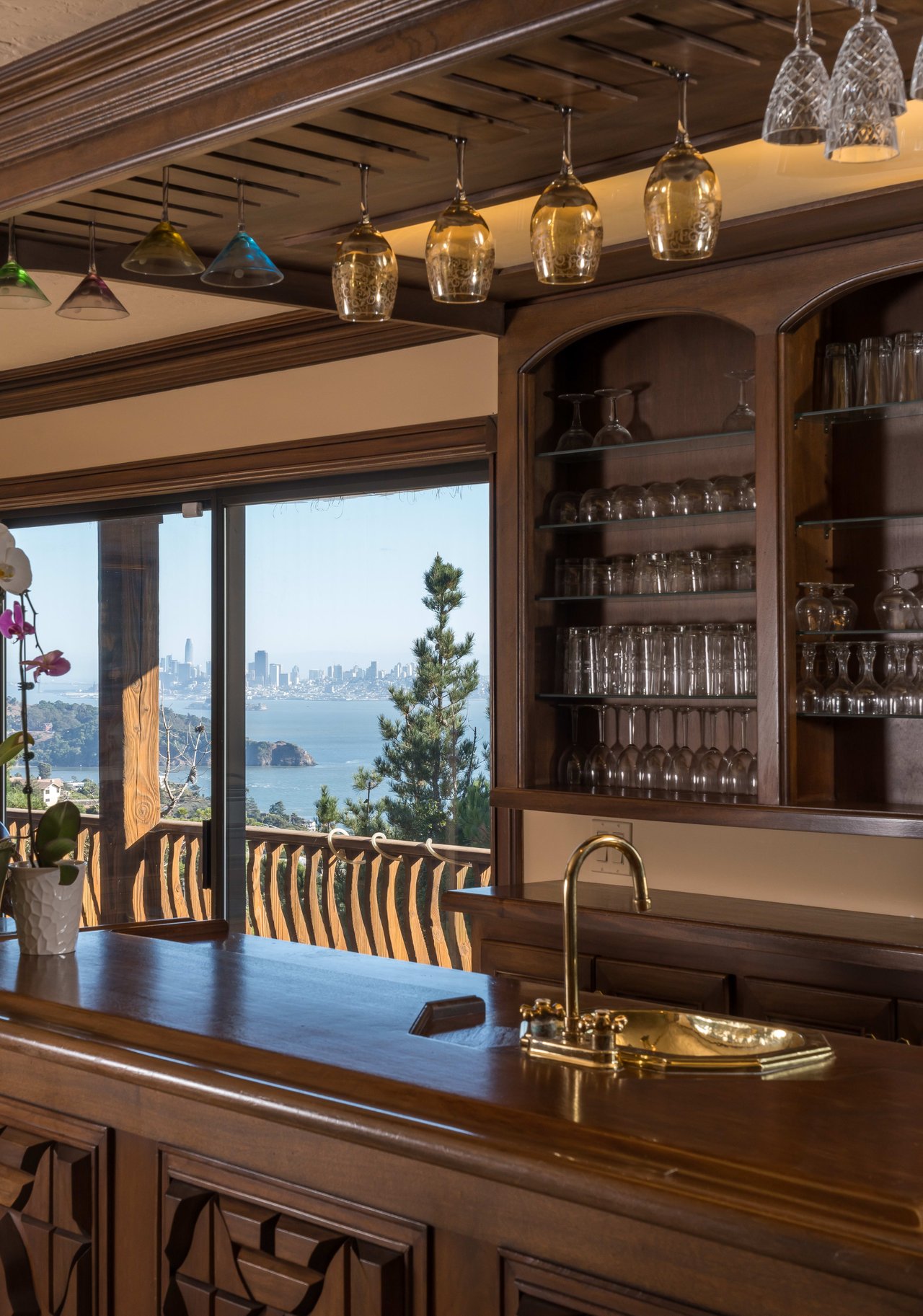 Commanding views, serene privacy, and endless potential define this sprawling residence on Mount Tiburon. The 7,665-sq. ft. home is situated on approximately 1.72 acres in one of Tiburon’s most prestigious locations and enjoys breathtaking views from nearly every room, including the San Francisco Skyline, Golden Gate Bridge, Bay Bridge, Sausalito across Richardson Bay, and Mount Tamalpais. Impeccable woodwork and craftsmanship grace every corner, providing a dramatic canvas for a new owner’s vision. With a generous lot size, there’s plenty of room to add a pool or create beautiful gardens for outdoor enjoyment.