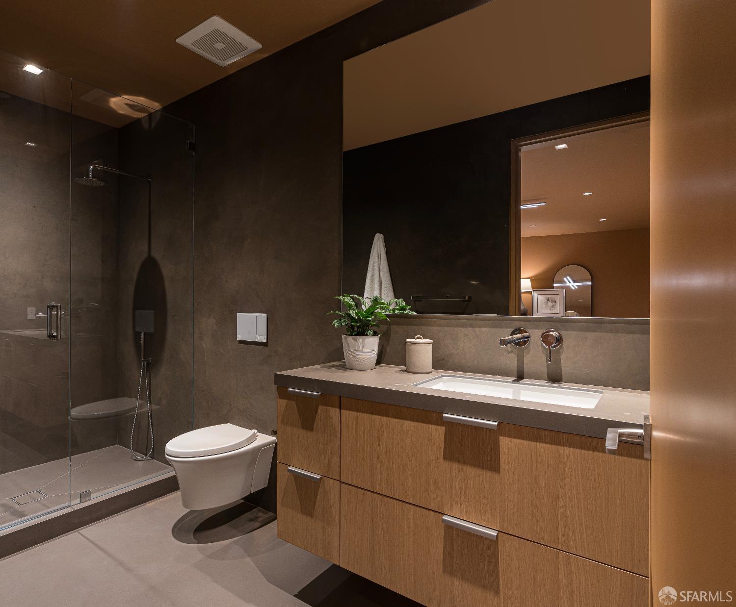 Upon entry to the main floor, you are greeted by the large living room with the stunning views, grand fireplace, and an adjacent office and powder room. The second floor offers the view-side, open-plan chef's kitchen and dining room, powder room, and ensuite bedroom. Above, the third floor is home to the primary suite with its commanding views, spa-like bathroom with walk in closet, and a third ensuite bedroom. Located above is the rooftop deck, perfect for a soaring soiree or a quiet visit for a view above it all. The lower floor offers the fourth ensuite bedroom, laundry, powder room and a large family room opening to the outdoor deck-lounge and the ground-level deck area with mature landscaping. Additional amenities include the private, gated-garage, solar power, designer finishes throughout, a central staircase flooded with natural light, the home’s private elevator which grants access to all levels, and the serene privacy at one of the highest – and brightest - points in the city.