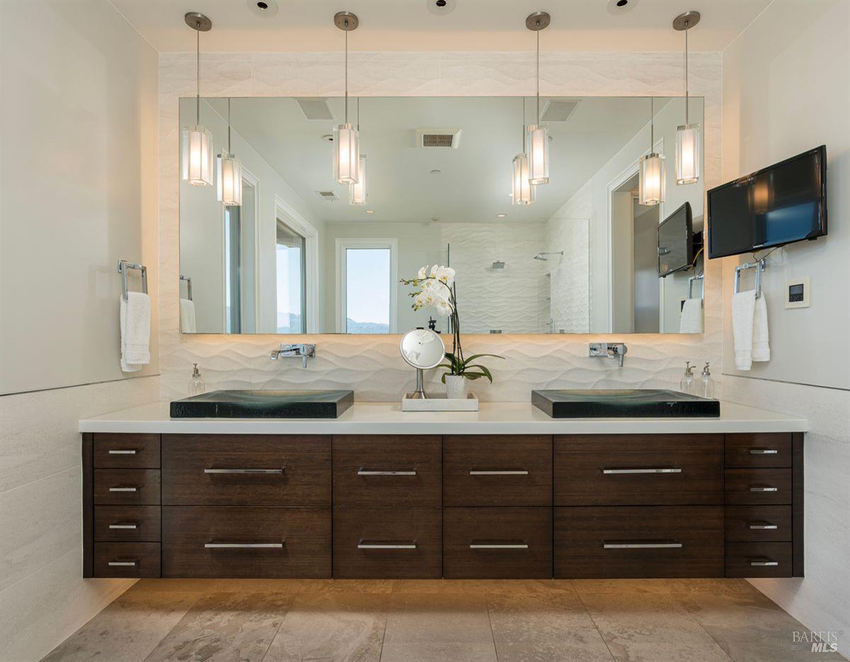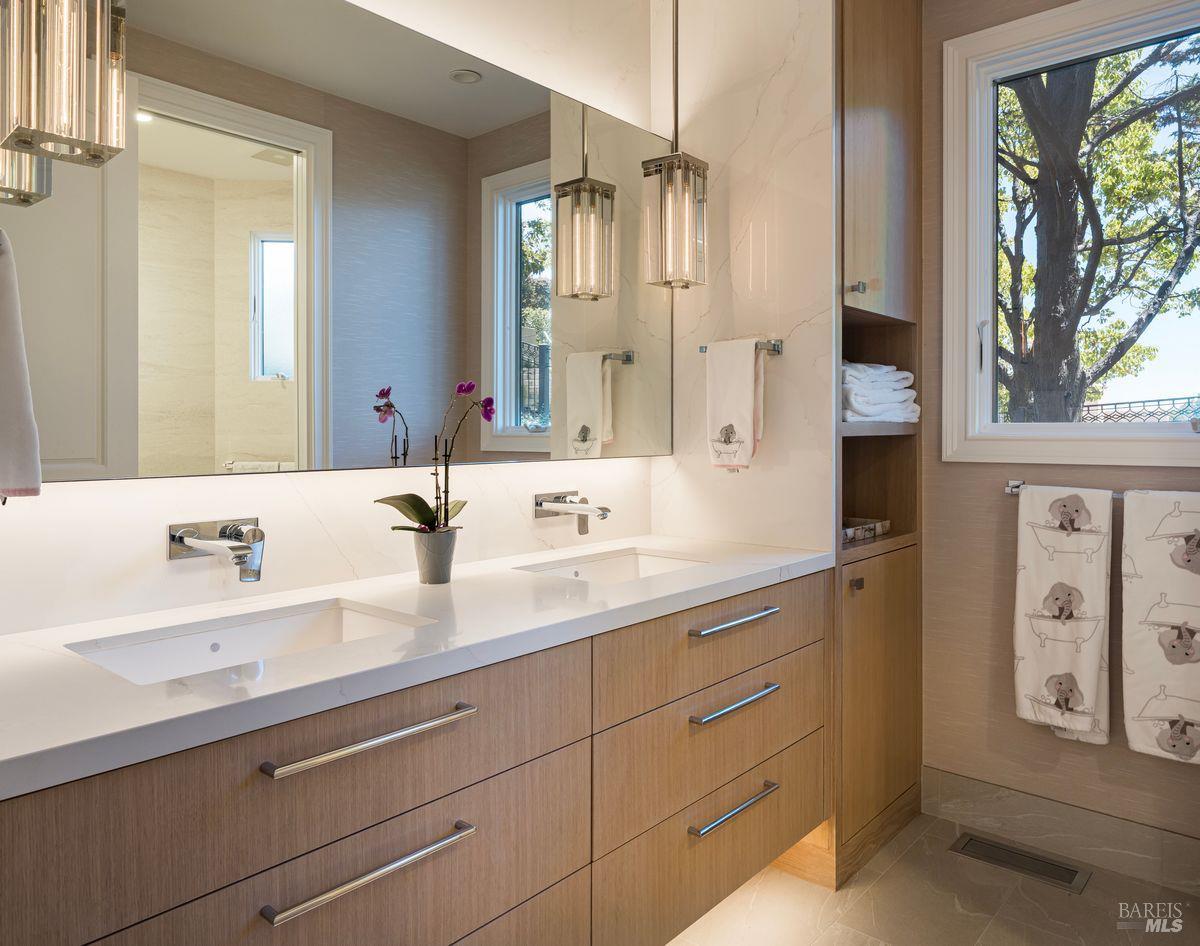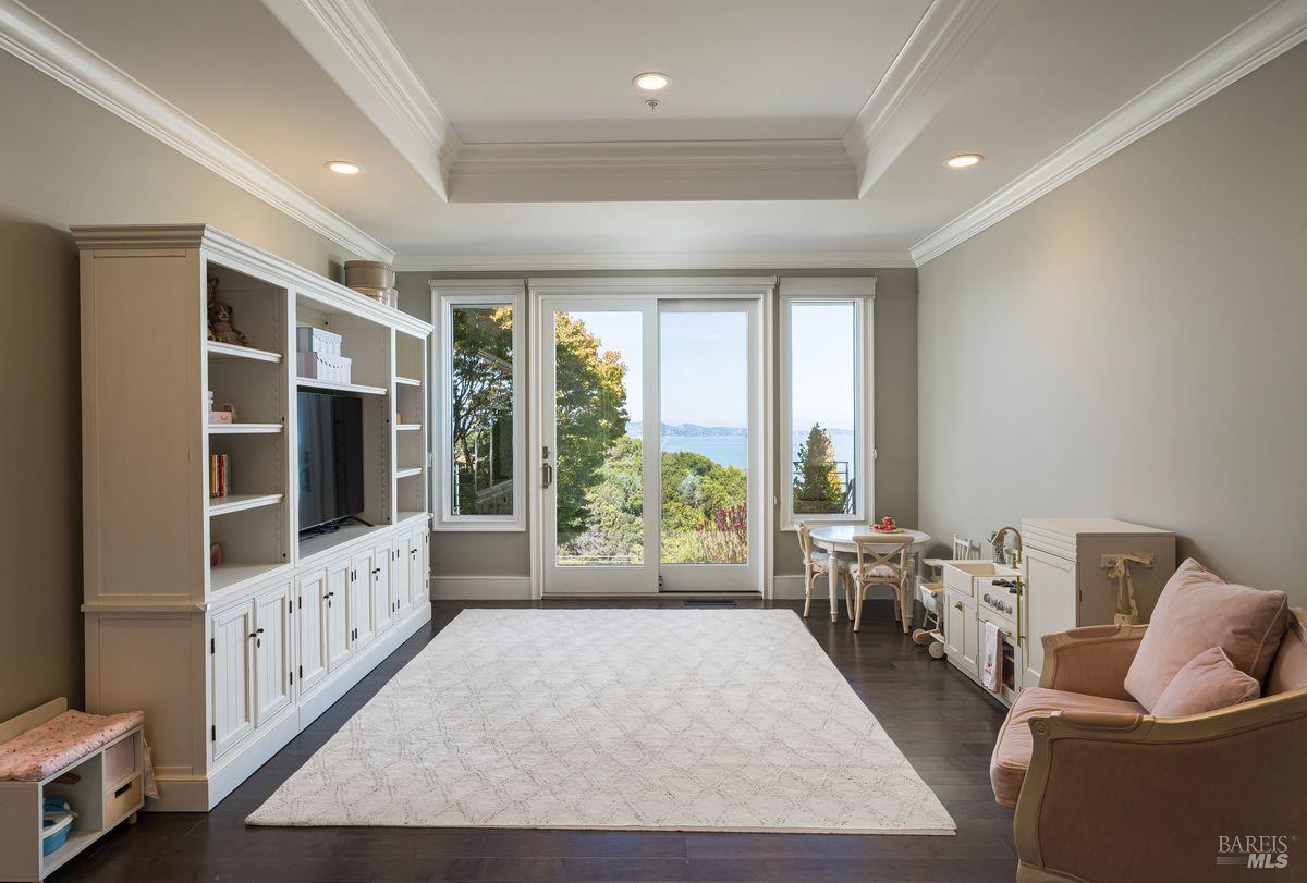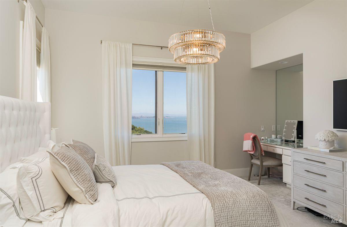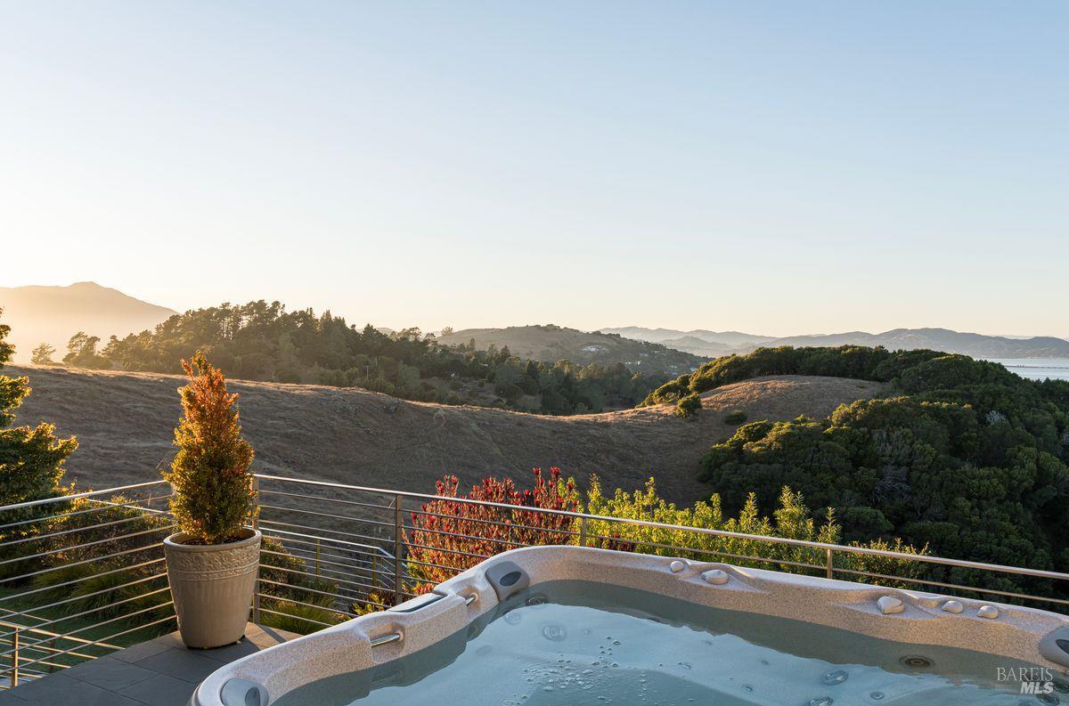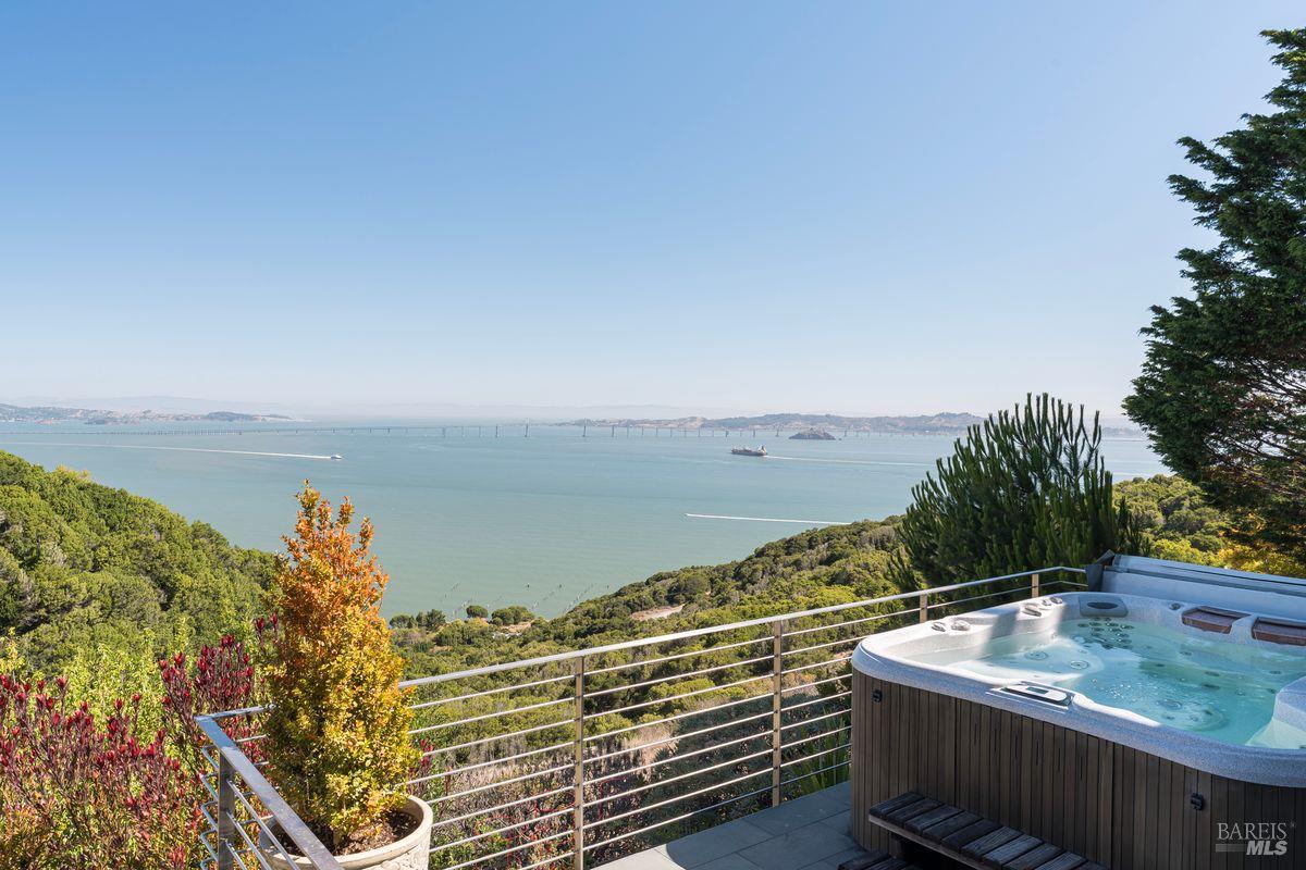 Outdoors, enjoy multiple patios, an inviting hot tub overlooking the Bay, low-maintenance Astro Turf lawns, and generous entertainment areas that embody the California indoor-outdoor lifestyle. With a front walkway that features Italian bluestone and a serene fountain. Located within the highly-rated Tiburon school district, this exceptional residence combines timeless elegance, architectural detail, and the ultimate in modern amenities. Approximately 6,400 square-foot main residence, with five bedrooms, four full and two half-baths, and a separate approximately 475 square foot, one-bedroom, one-bath guest house. This listing also comes with approved plans for a pool.
