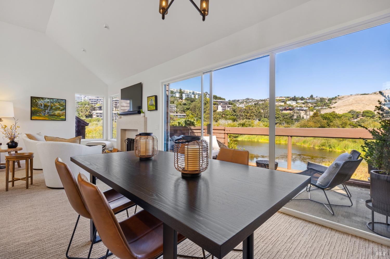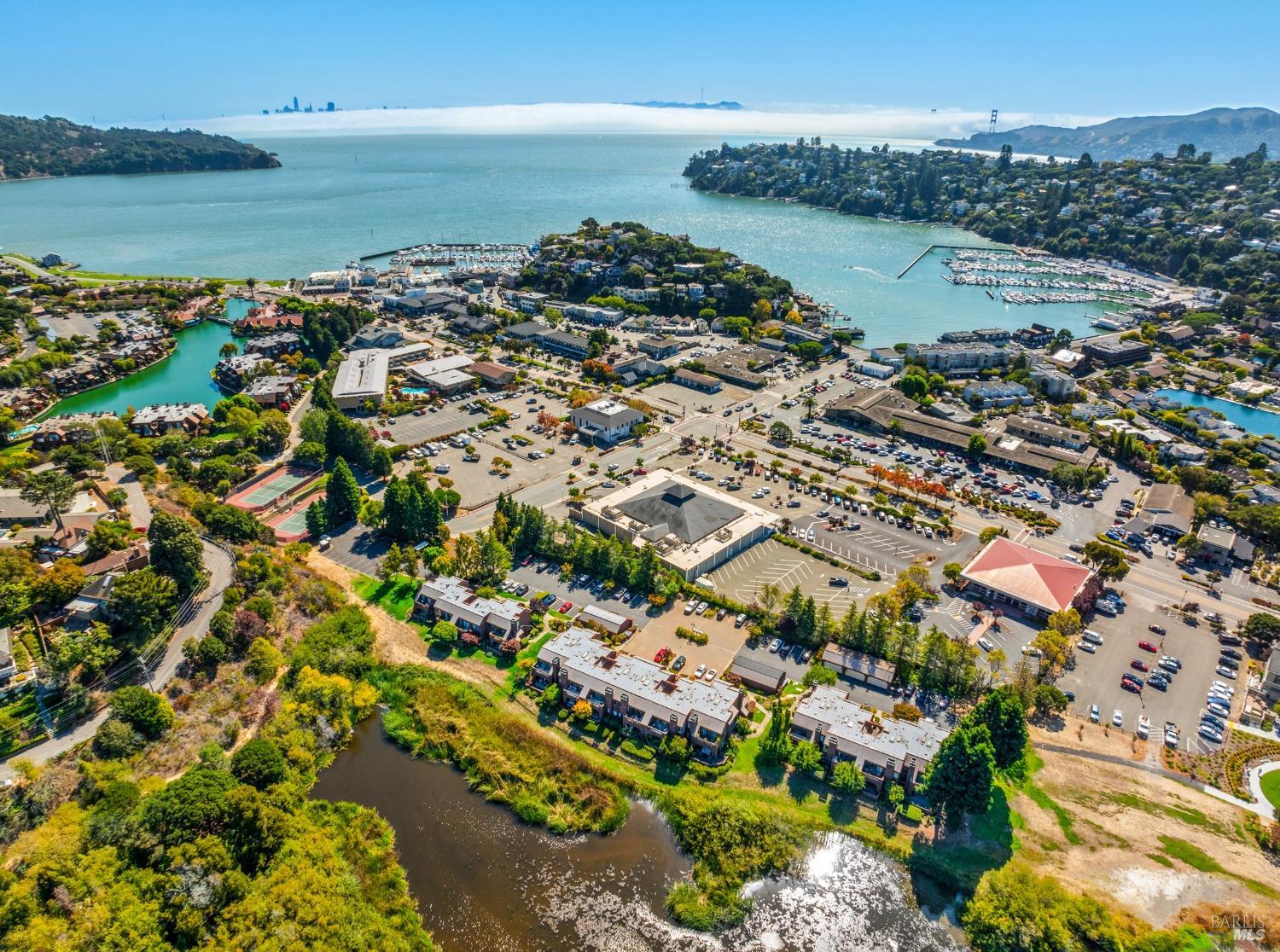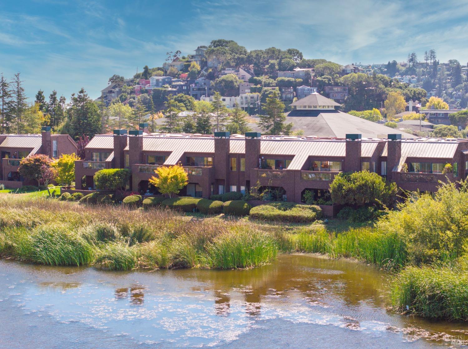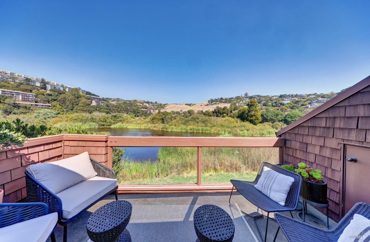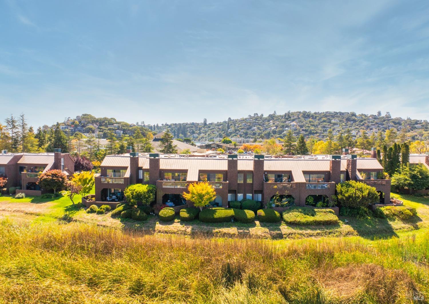 Tranquil living in this tastefully updated upper unit overlooking the Tiburon Lagoon, the rolling hills of Tiburon, and Old St. Hilary's historic church. Elegantly styled and perfectly appointed for an easy lifestyle offering a great open floor plan and an abundance of natural light. Thoughtfully designed living room and dining room combination opens to an invitingterrace. Tastefully updated kitchen with Dekton Denae countertops and Dacor gas range. Light and bright primary suite boasts vaulted ceilings. Both the primary bathroom and guest bathroom are updated with Dekton Denae countertops, trench sinks, and Sigma faucets.Laundry closet with a stacked washer and dryer.1 car detached garage; 1 dedicated parking spot. The community grounds boast mature landscaping, meandering walkways, andlush lawns. Incredible in town location near CVS, the Boardwalk Shopping Center and only blocks to downtown Tiburon's Main Street with boutique shops, gourmet restaurants, San Francisco and Angel Island ferry service, and the shoreline waterfront bike and walking pathway.