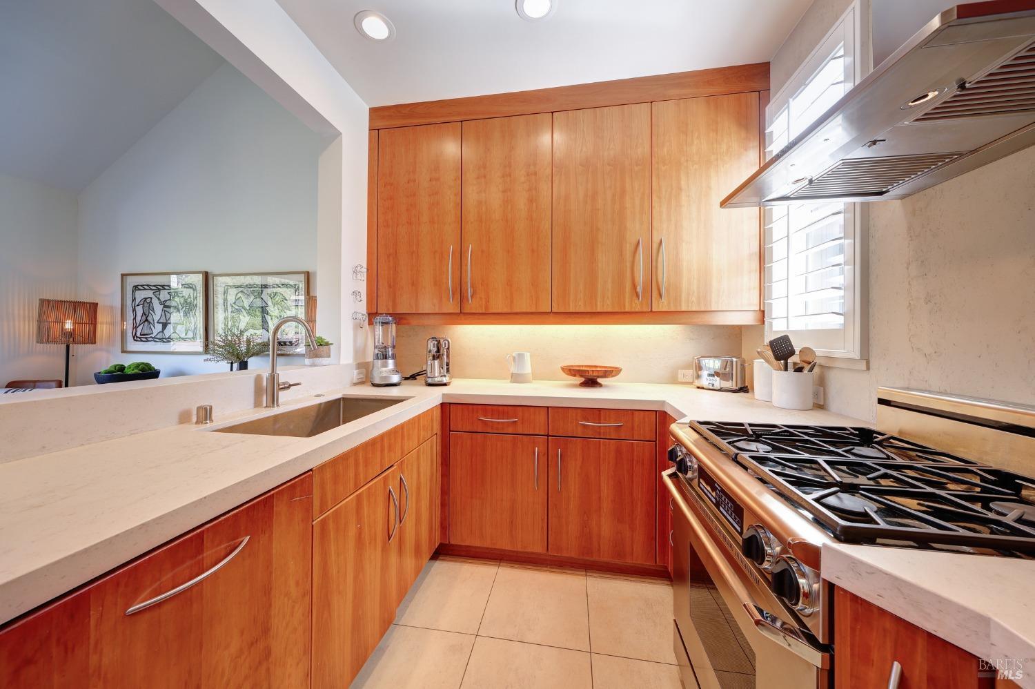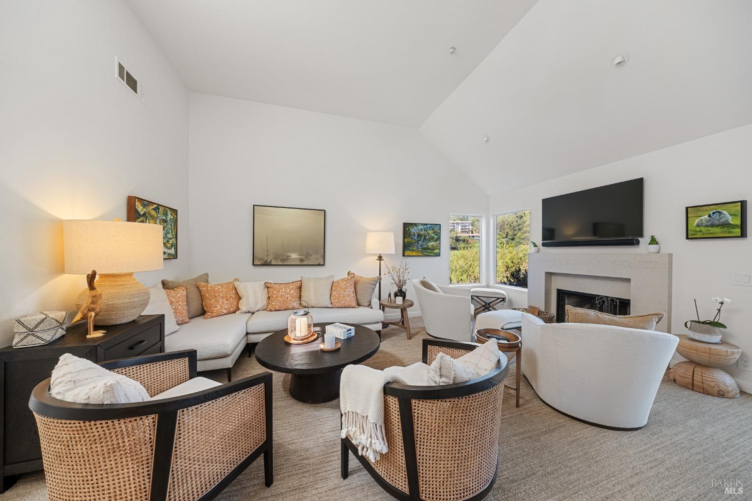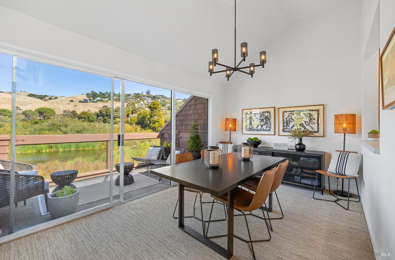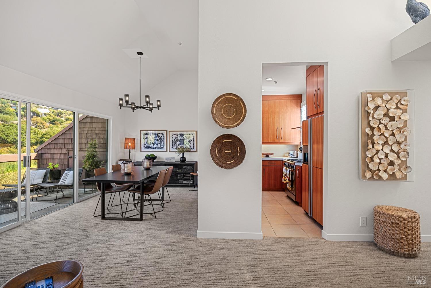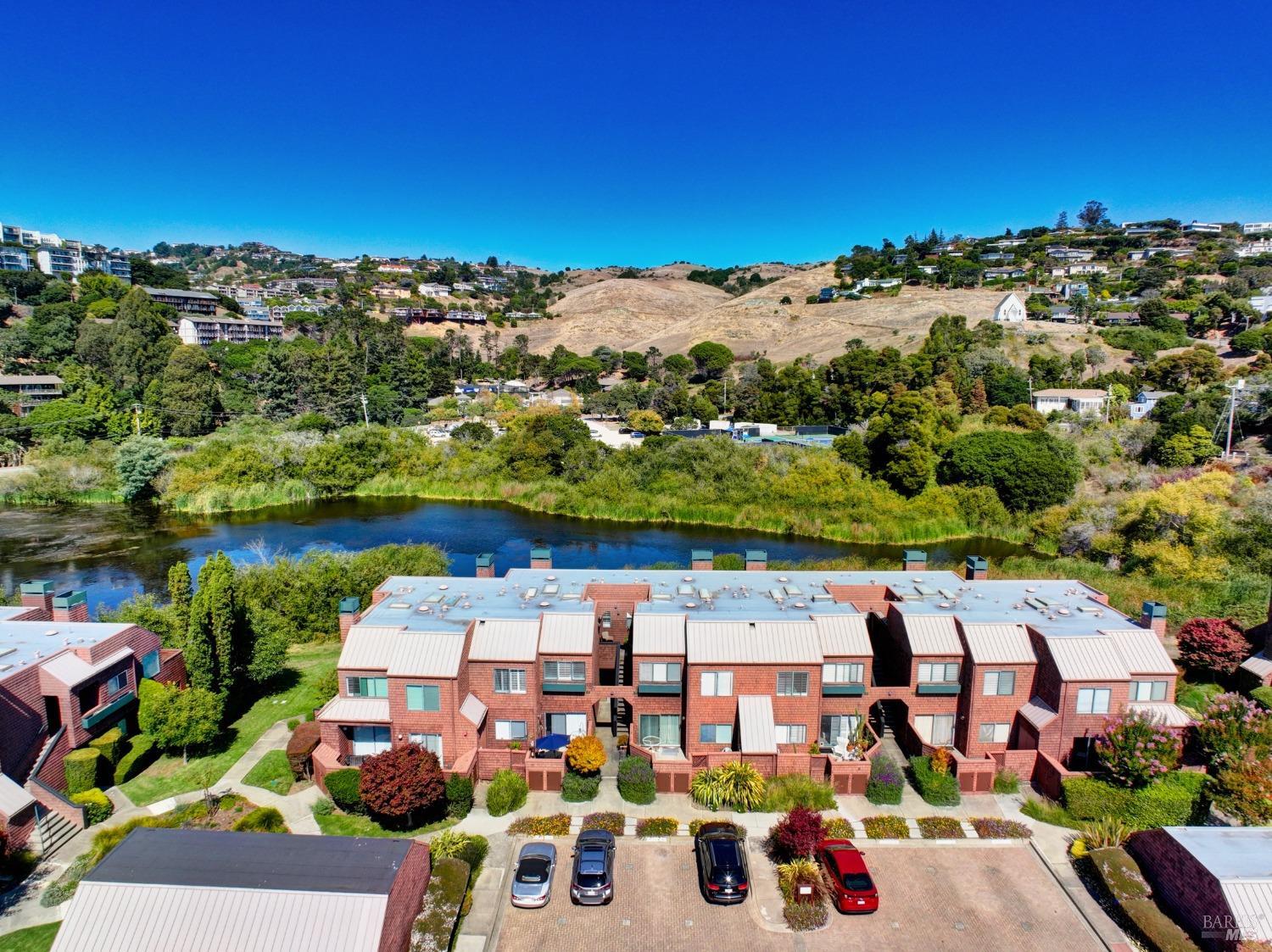 Tranquil living in this tastefully updated upper unit overlooking the Tiburon Lagoon, the rolling hills of Tiburon, and Old St. Hilary's historic church. Elegantly styled and perfectly appointed for an easy lifestyle offering a great open floor plan and an abundance of natural light. Thoughtfully designed living room and dining room combination opens to an invitingterrace. Tastefully updated kitchen with Dekton Denae countertops and Dacor gas range. Light and bright primary suite boasts vaulted ceilings. Both the primary bathroom and guest bathroom are updated with Dekton Denae countertops, trench sinks, and Sigma faucets.Laundry closet with a stacked washer and dryer.1 car detached garage; 1 dedicated parking spot. The community grounds boast mature landscaping, meandering walkways, andlush lawns. Incredible in town location near CVS, the Boardwalk Shopping Center and only blocks to downtown Tiburon's Main Street with boutique shops, gourmet restaurants, San Francisco and Angel Island ferry service, and the shoreline waterfront bike and walking pathway.
