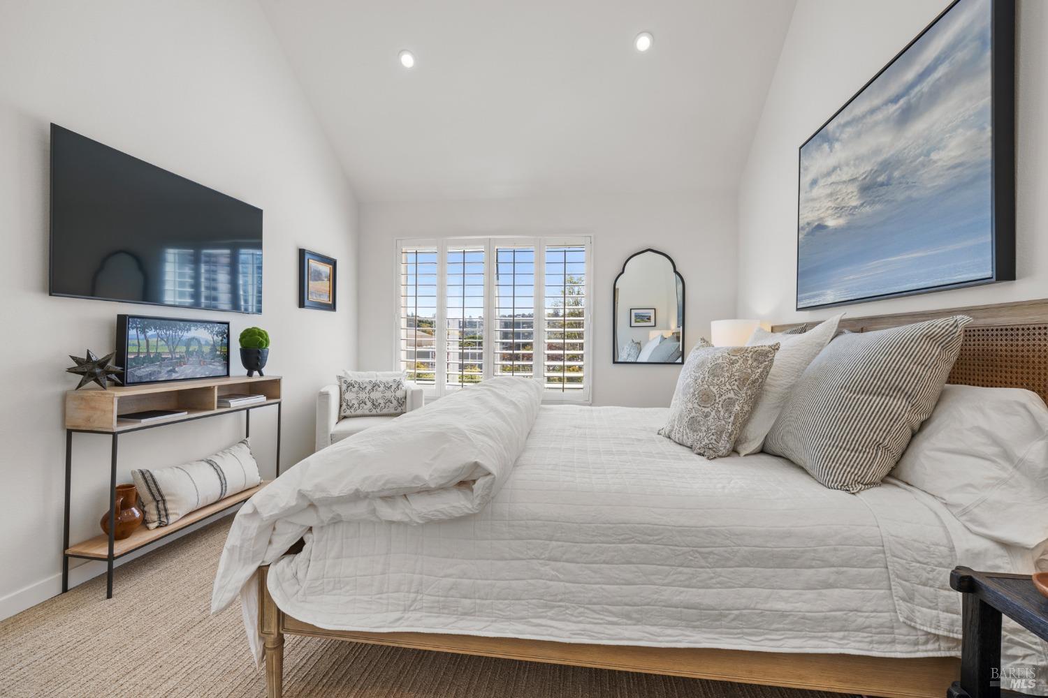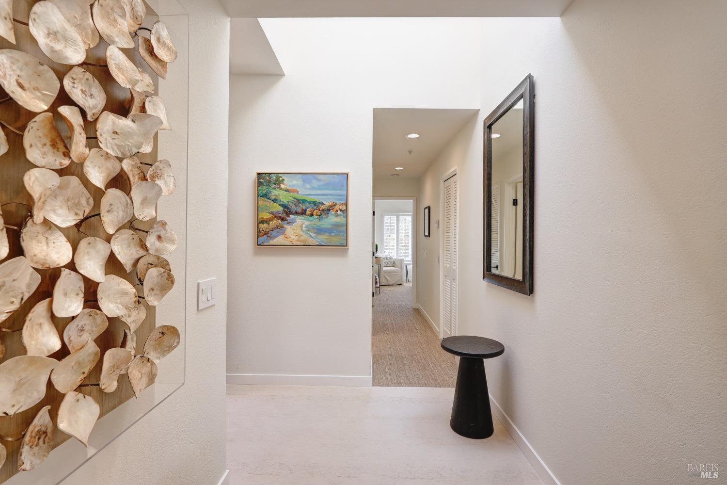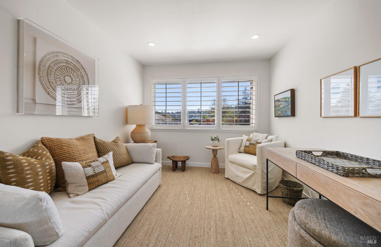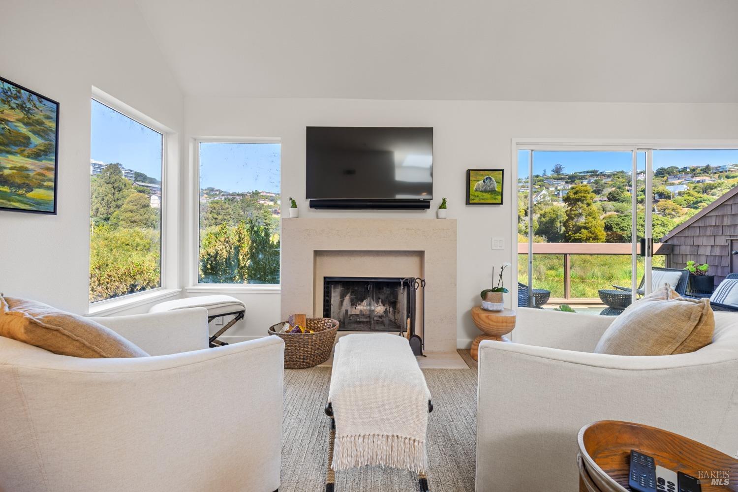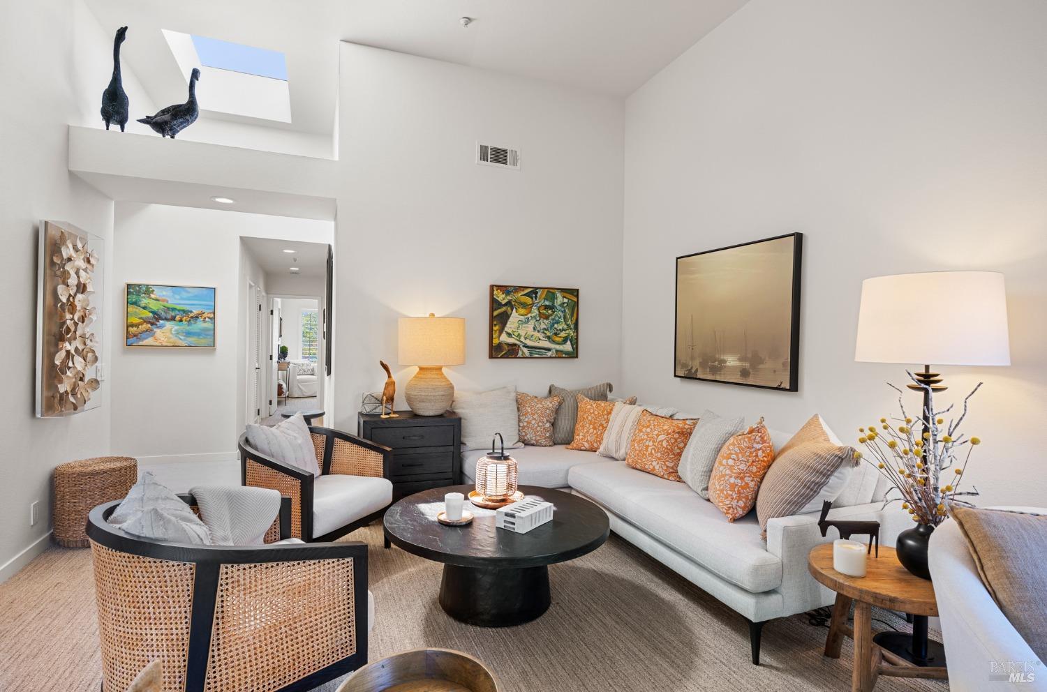 Tranquil living in this tastefully updated upper unit overlooking the Tiburon Lagoon, the rolling hills of Tiburon, and Old St. Hilary's historic church. Elegantly styled and perfectly appointed for an easy lifestyle offering a great open floor plan and an abundance of natural light. Thoughtfully designed living room and dining room combination opens to an invitingterrace. Tastefully updated kitchen with Dekton Denae countertops and Dacor gas range. Light and bright primary suite boasts vaulted ceilings. Both the primary bathroom and guest bathroom are updated with Dekton Denae countertops, trench sinks, and Sigma faucets.Laundry closet with a stacked washer and dryer.1 car detached garage; 1 dedicated parking spot. The community grounds boast mature landscaping, meandering walkways, andlush lawns. Incredible in town location near CVS, the Boardwalk Shopping Center and only blocks to downtown Tiburon's Main Street with boutique shops, gourmet restaurants, San Francisco and Angel Island ferry service, and the shoreline waterfront bike and walking pathway.