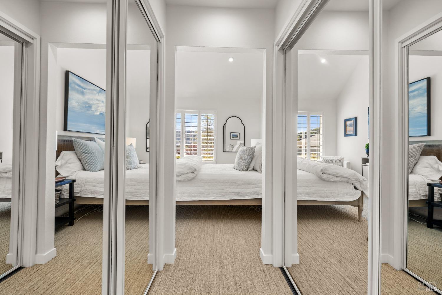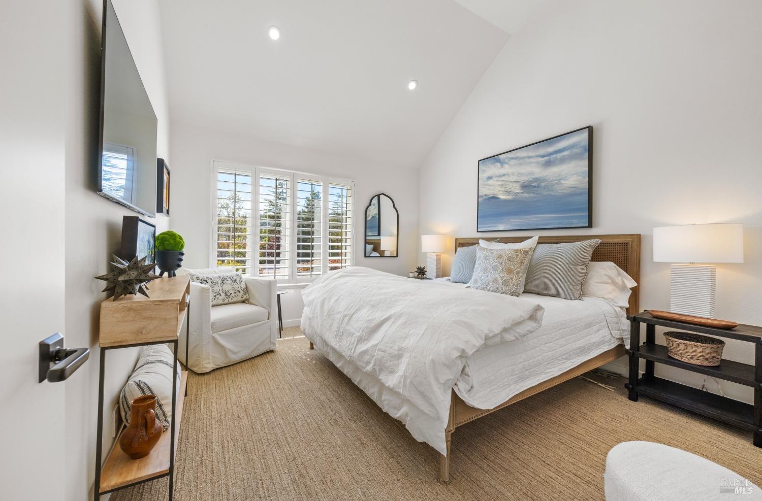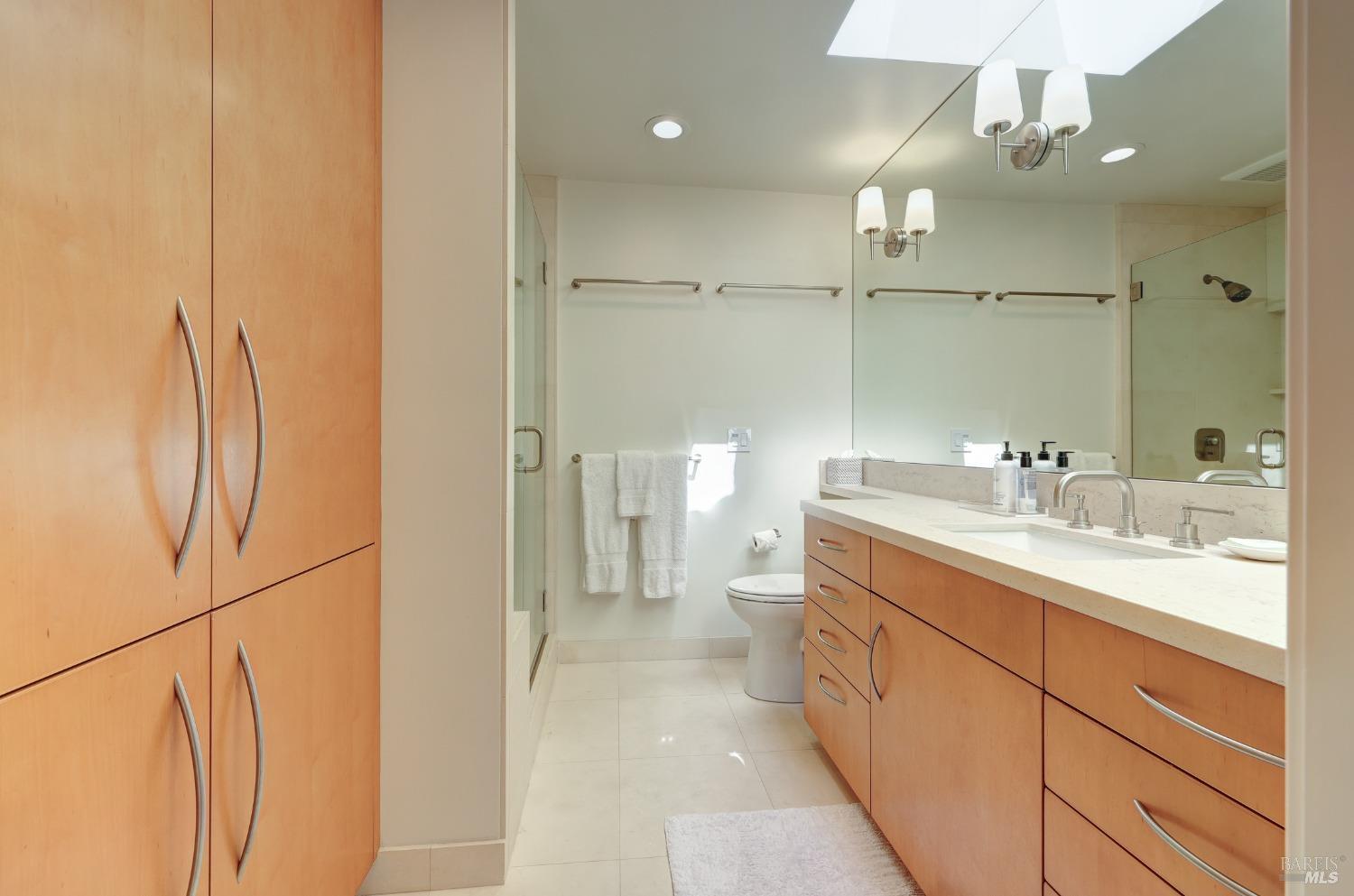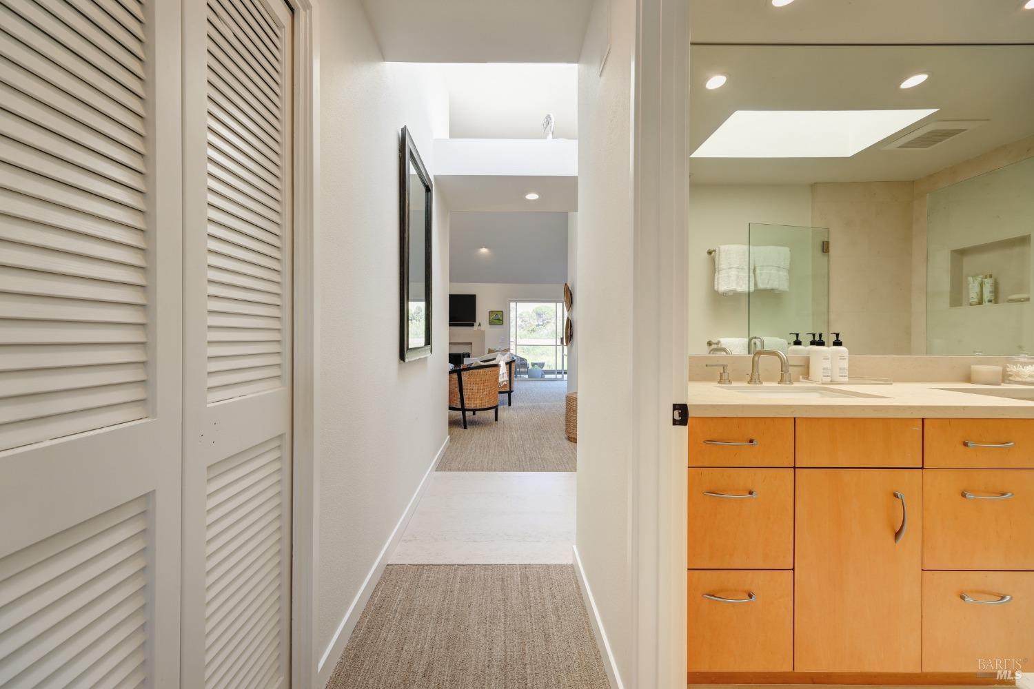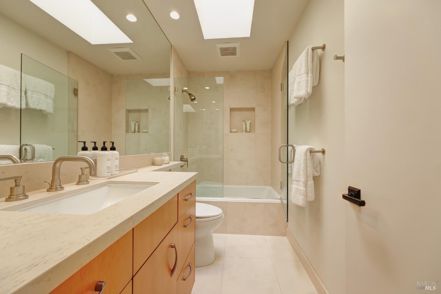 Tranquil living in this tastefully updated upper unit overlooking the Tiburon Lagoon, the rolling hills of Tiburon, and Old St. Hilary's historic church. Elegantly styled and perfectly appointed for an easy lifestyle offering a great open floor plan and an abundance of natural light. Thoughtfully designed living room and dining room combination opens to an invitingterrace. Tastefully updated kitchen with Dekton Denae countertops and Dacor gas range. Light and bright primary suite boasts vaulted ceilings. Both the primary bathroom and guest bathroom are updated with Dekton Denae countertops, trench sinks, and Sigma faucets.Laundry closet with a stacked washer and dryer.1 car detached garage; 1 dedicated parking spot. The community grounds boast mature landscaping, meandering walkways, andlush lawns. Incredible in town location near CVS, the Boardwalk Shopping Center and only blocks to downtown Tiburon's Main Street with boutique shops, gourmet restaurants, San Francisco and Angel Island ferry service, and the shoreline waterfront bike and walking pathway.