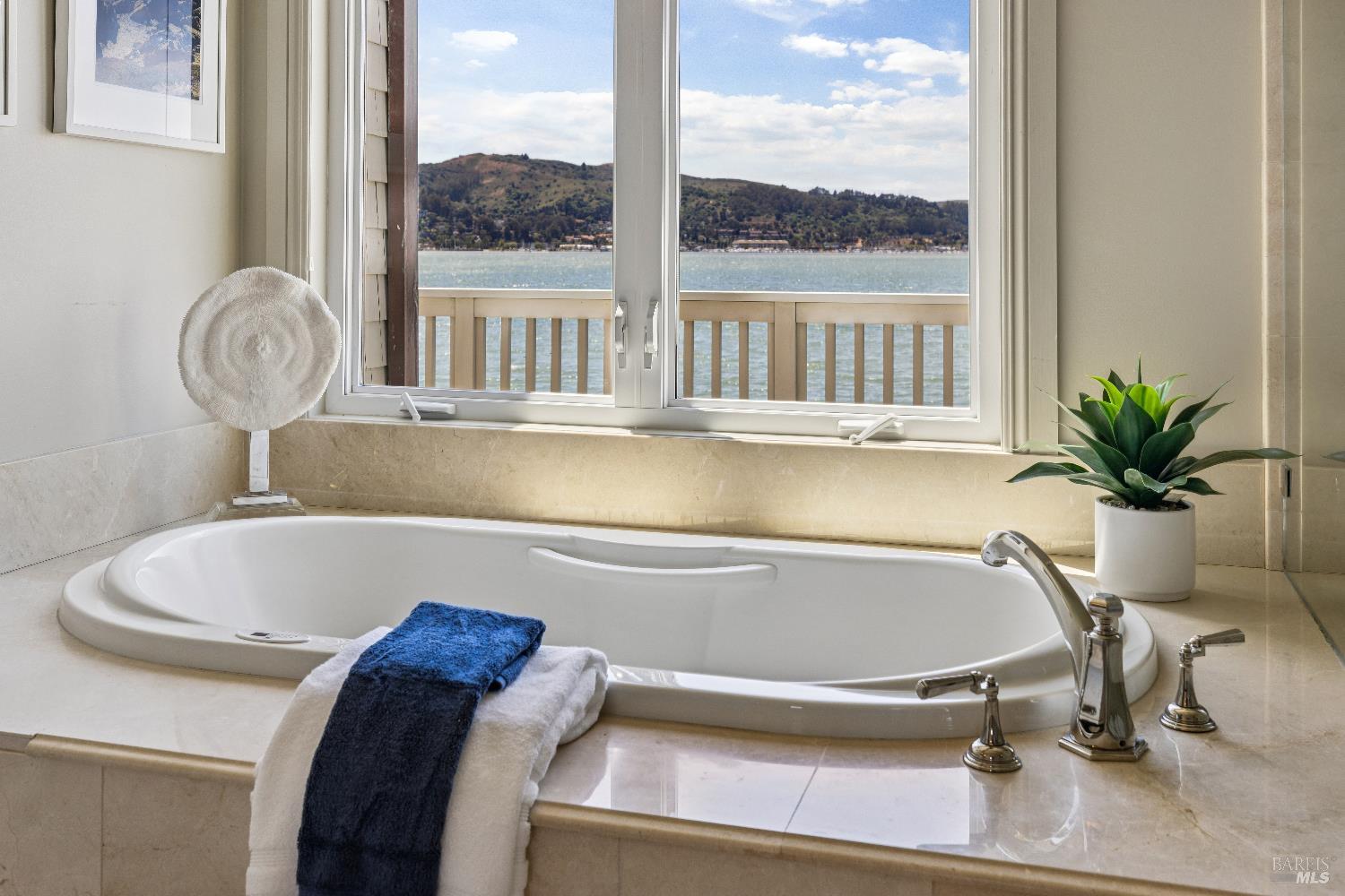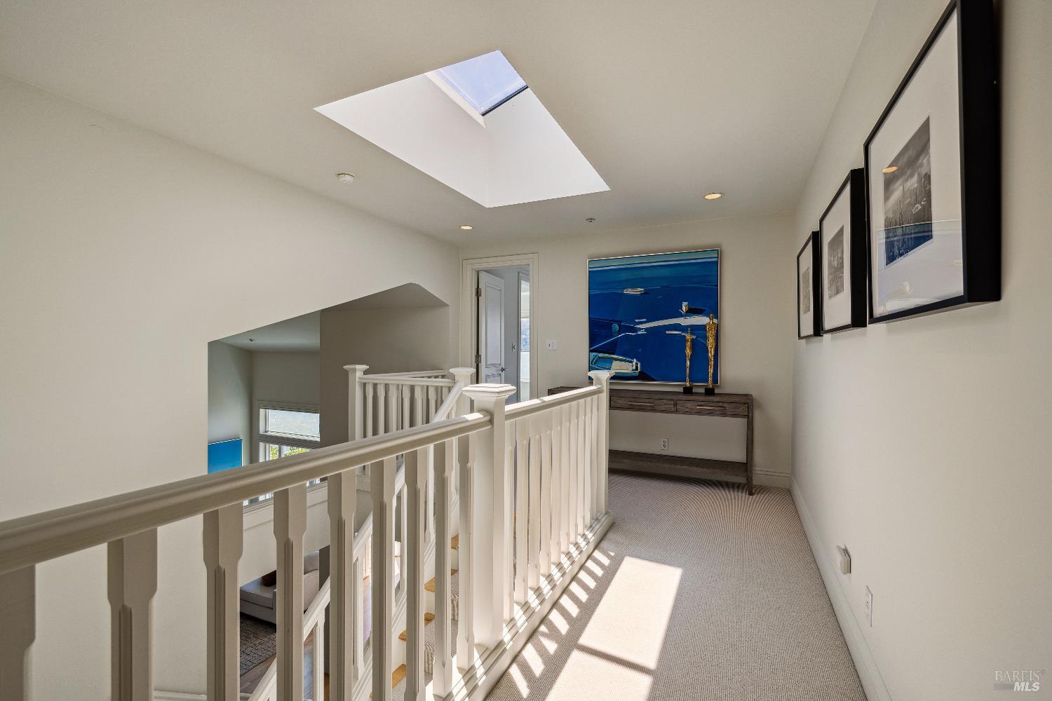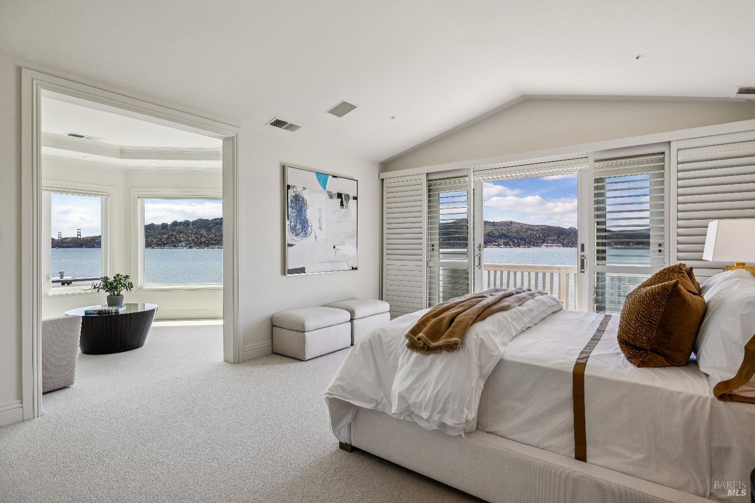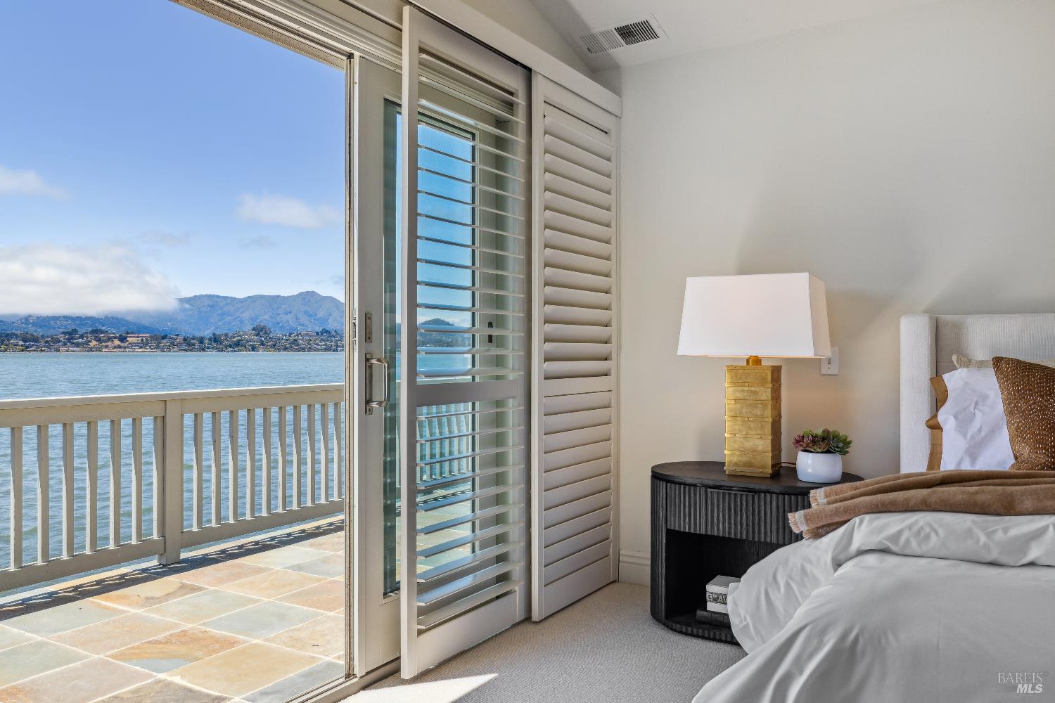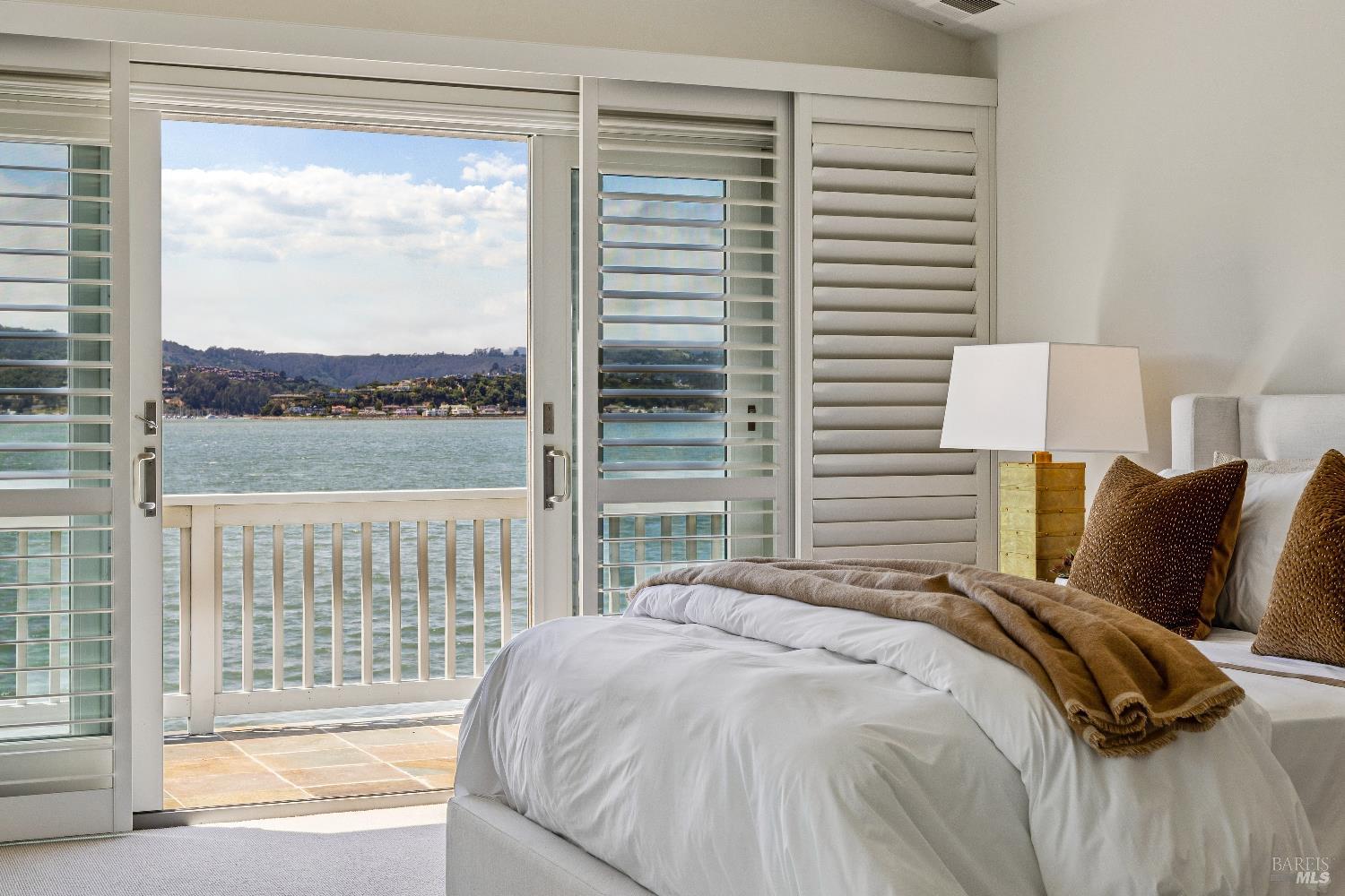 The upper level of the home has a resort-like primary suite with endless views from the main bedroom, sitting room, private terrace, and luxuriant bathroom with a large walk-in closet and dressing space. There is also a second ensuite bedroom with balcony, and a large, light-filled laundry room. Additional highlights include two fireplaces, a two-car garage, motor court, and lush manicured grounds including a pond. The nautical oasis blends waterfront living with the best of Belvedere-Tiburon’s dining, shopping, and award-winning schools at your doorstep, all just minutes from San Francisco.