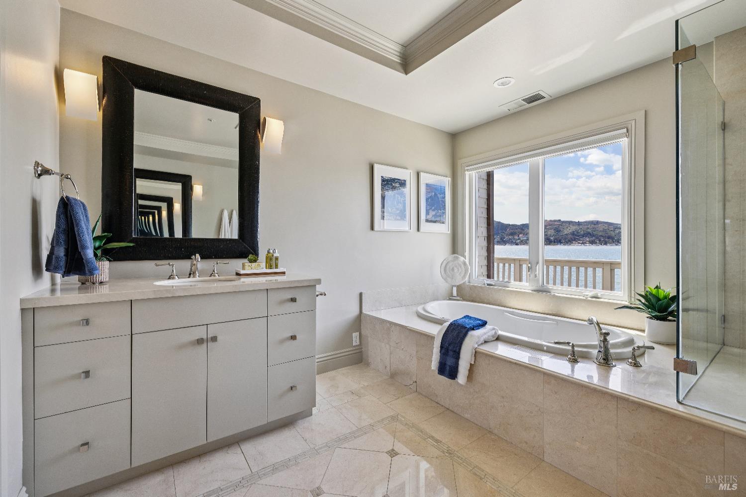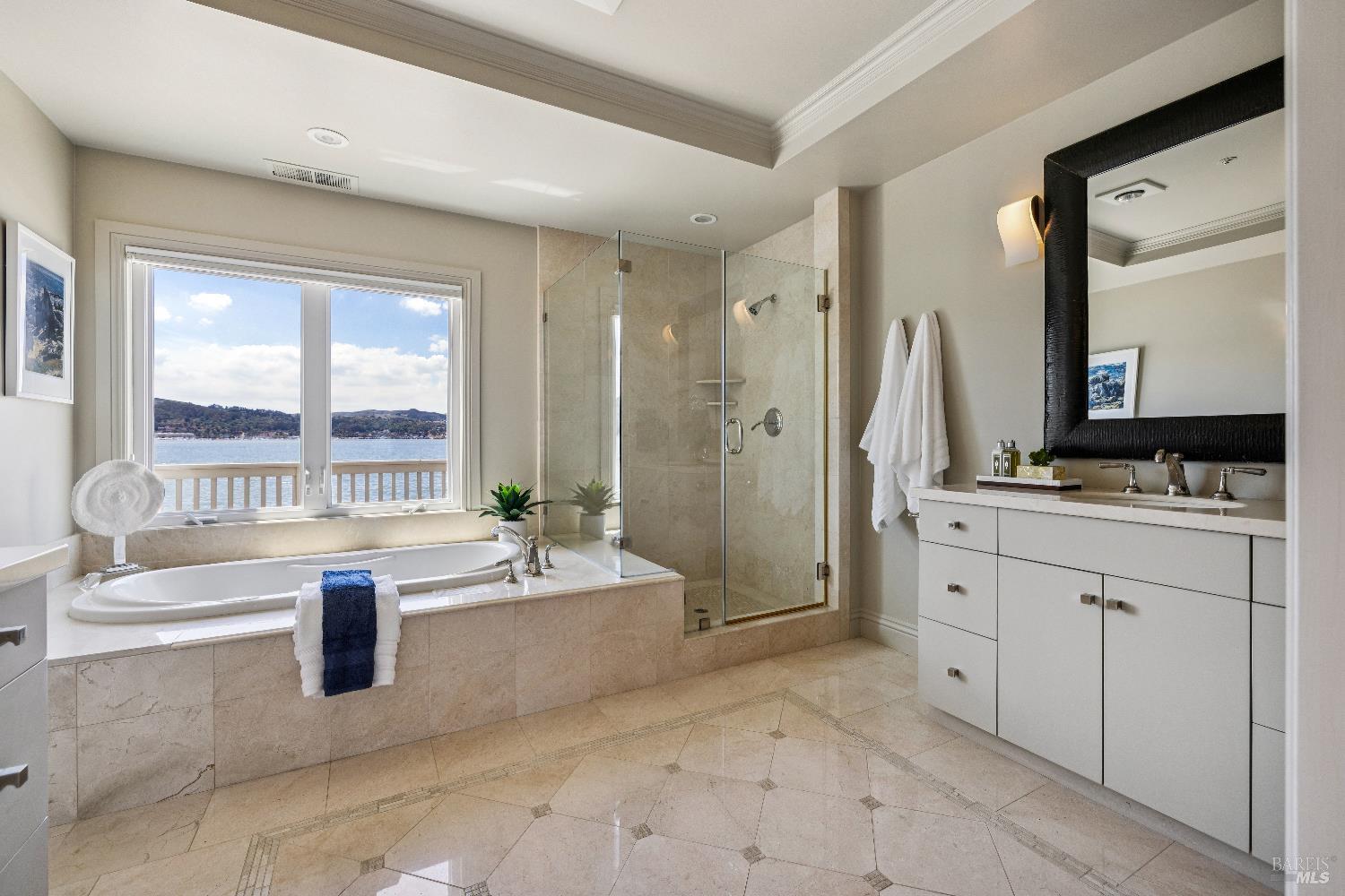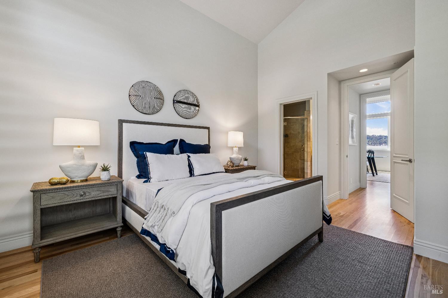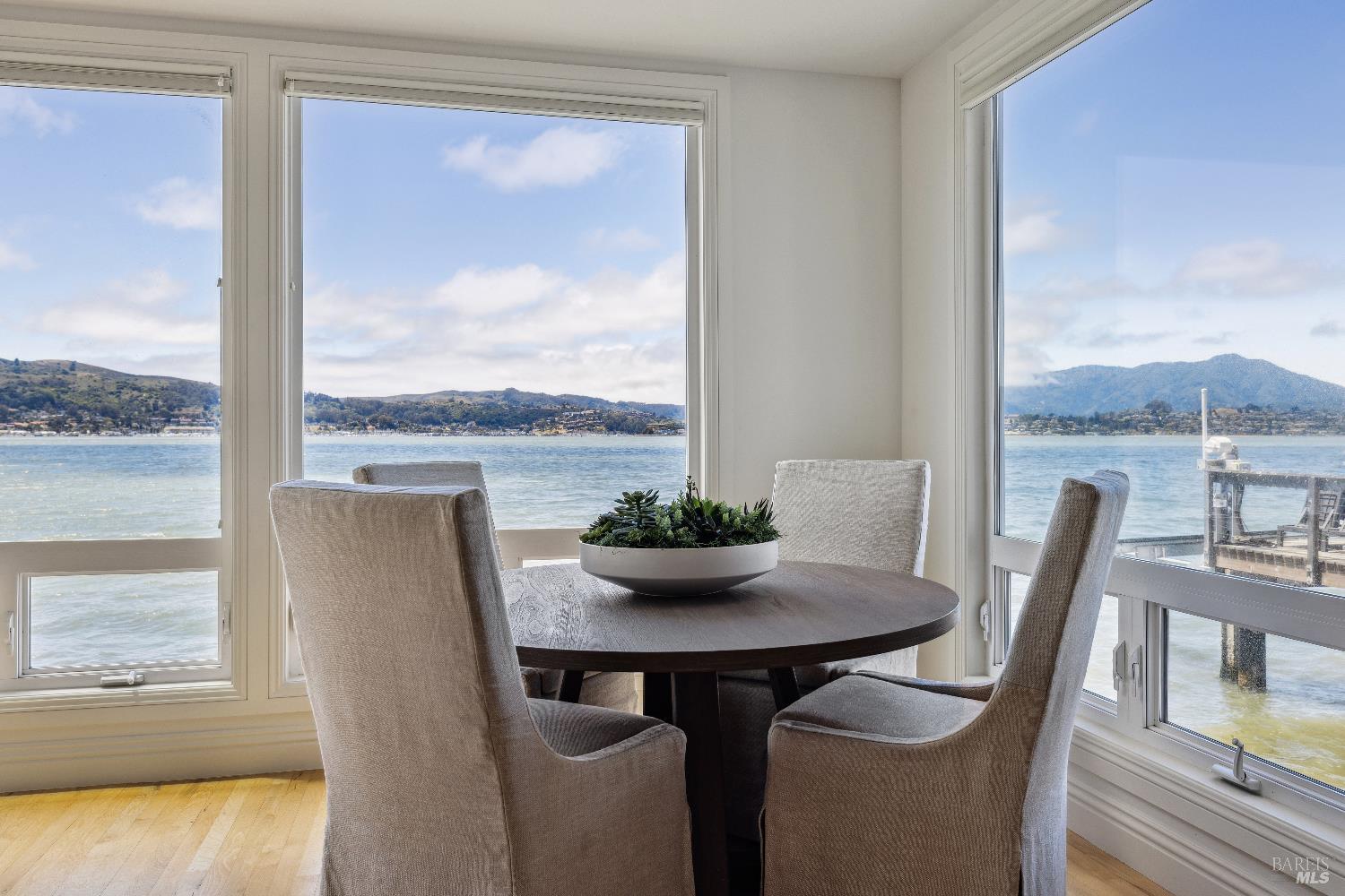 The upper level of the home has a resort-like primary suite with endless views from the main bedroom, sitting room, private terrace, and luxuriant bathroom with a large walk-in closet and dressing space. There is also a second ensuite bedroom with balcony, and a large, light-filled laundry room. Additional highlights include two fireplaces, a two-car garage, motor court, and lush manicured grounds including a pond. The nautical oasis blends waterfront living with the best of Belvedere-Tiburon’s dining, shopping, and award-winning schools at your doorstep, all just minutes from San Francisco.