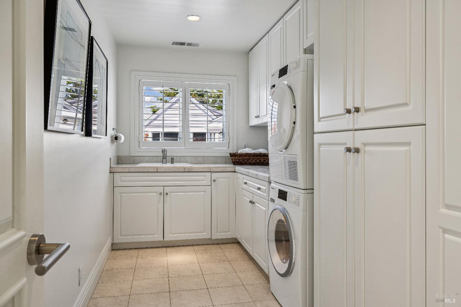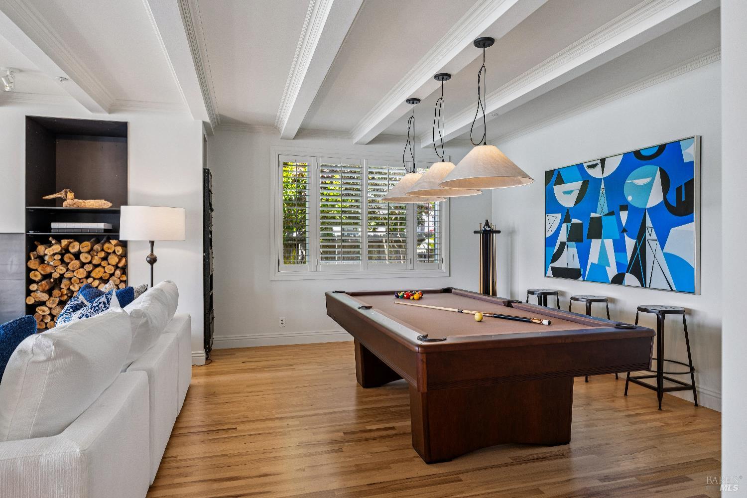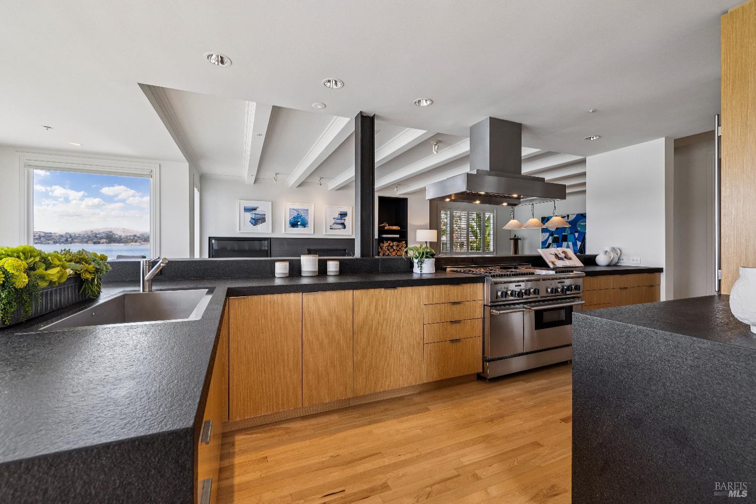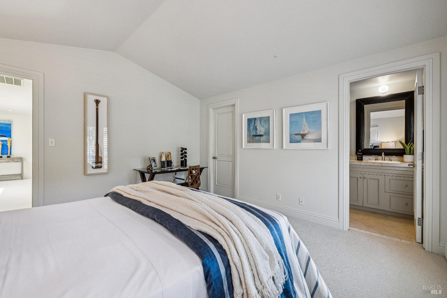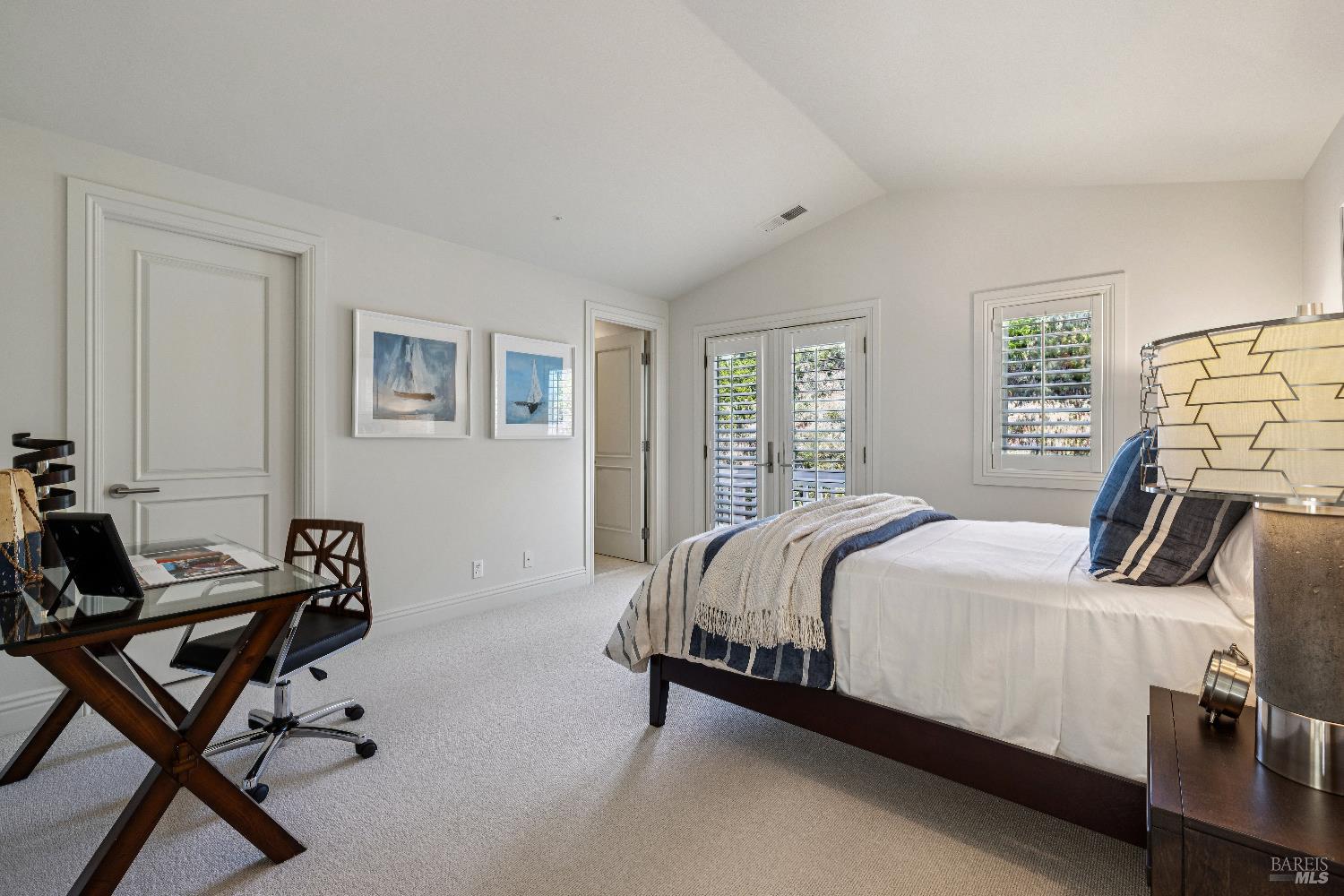 The upper level of the home has a resort-like primary suite with endless views from the main bedroom, sitting room, private terrace, and luxuriant bathroom with a large walk-in closet and dressing space. There is also a second ensuite bedroom with balcony, and a large, light-filled laundry room. Additional highlights include two fireplaces, a two-car garage, motor court, and lush manicured grounds including a pond. The nautical oasis blends waterfront living with the best of Belvedere-Tiburon’s dining, shopping, and award-winning schools at your doorstep, all just minutes from San Francisco.