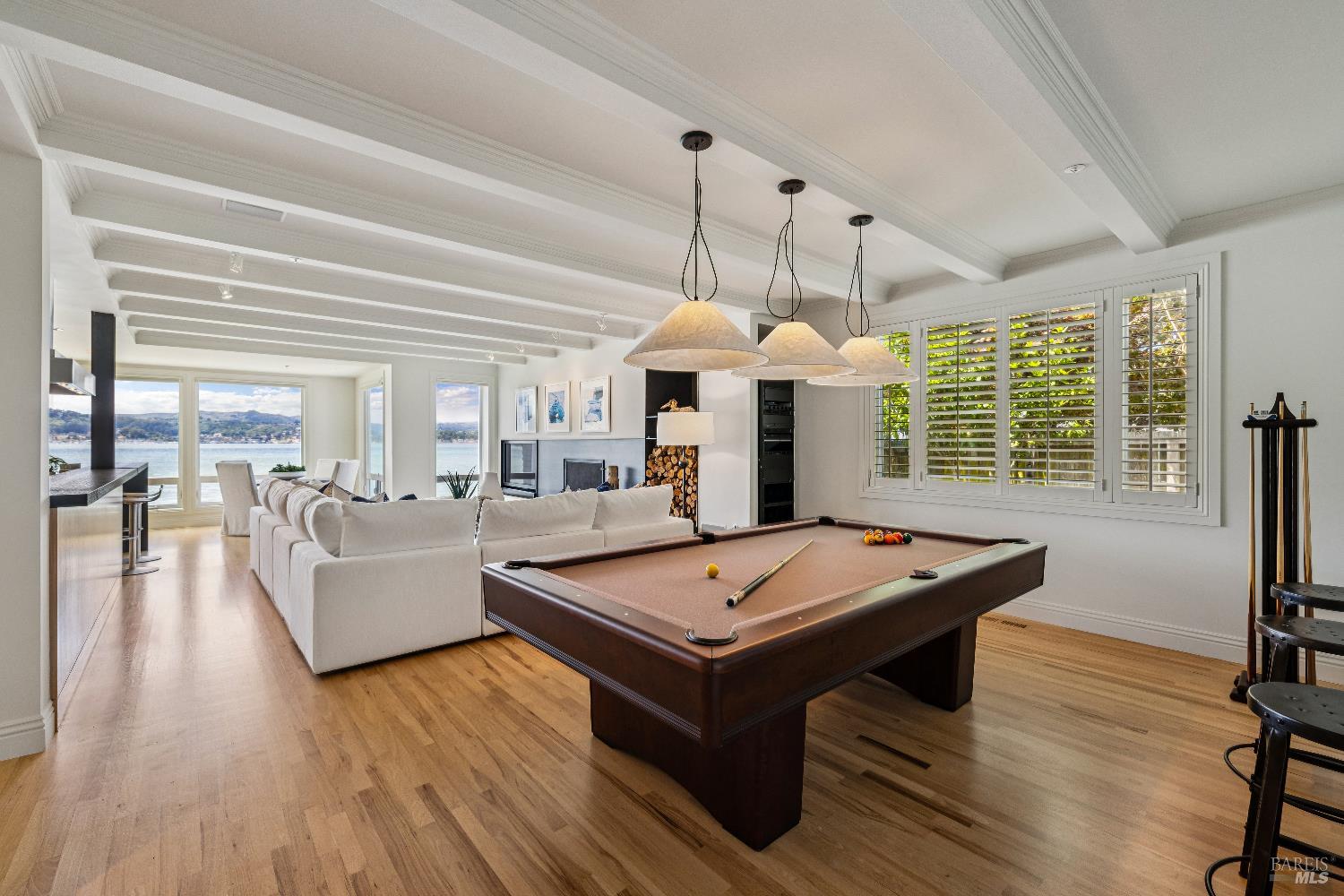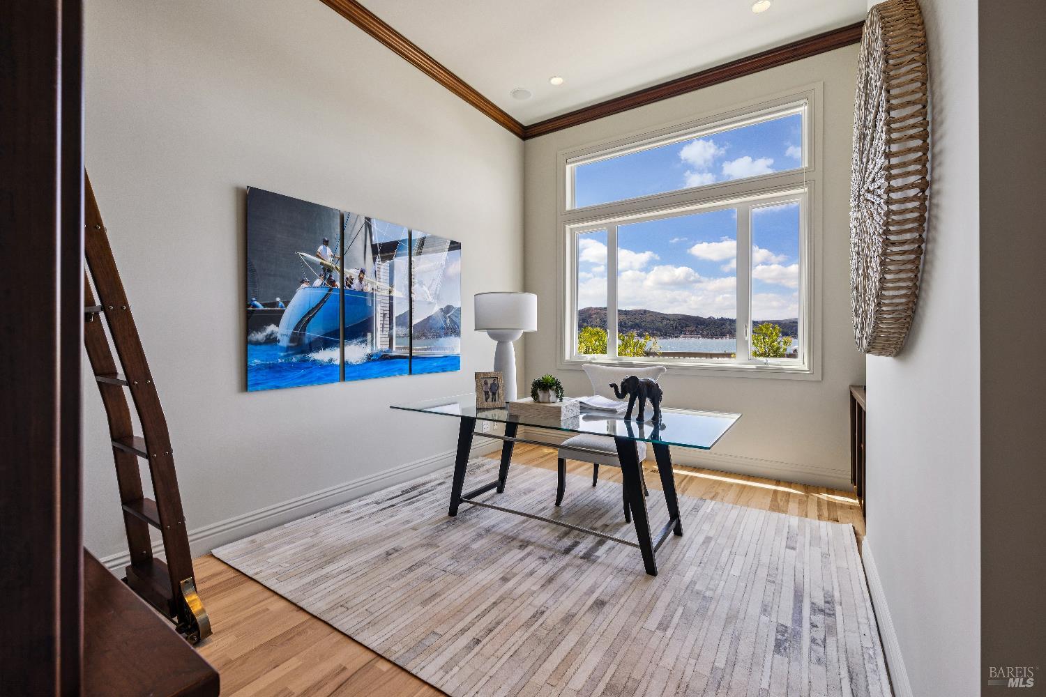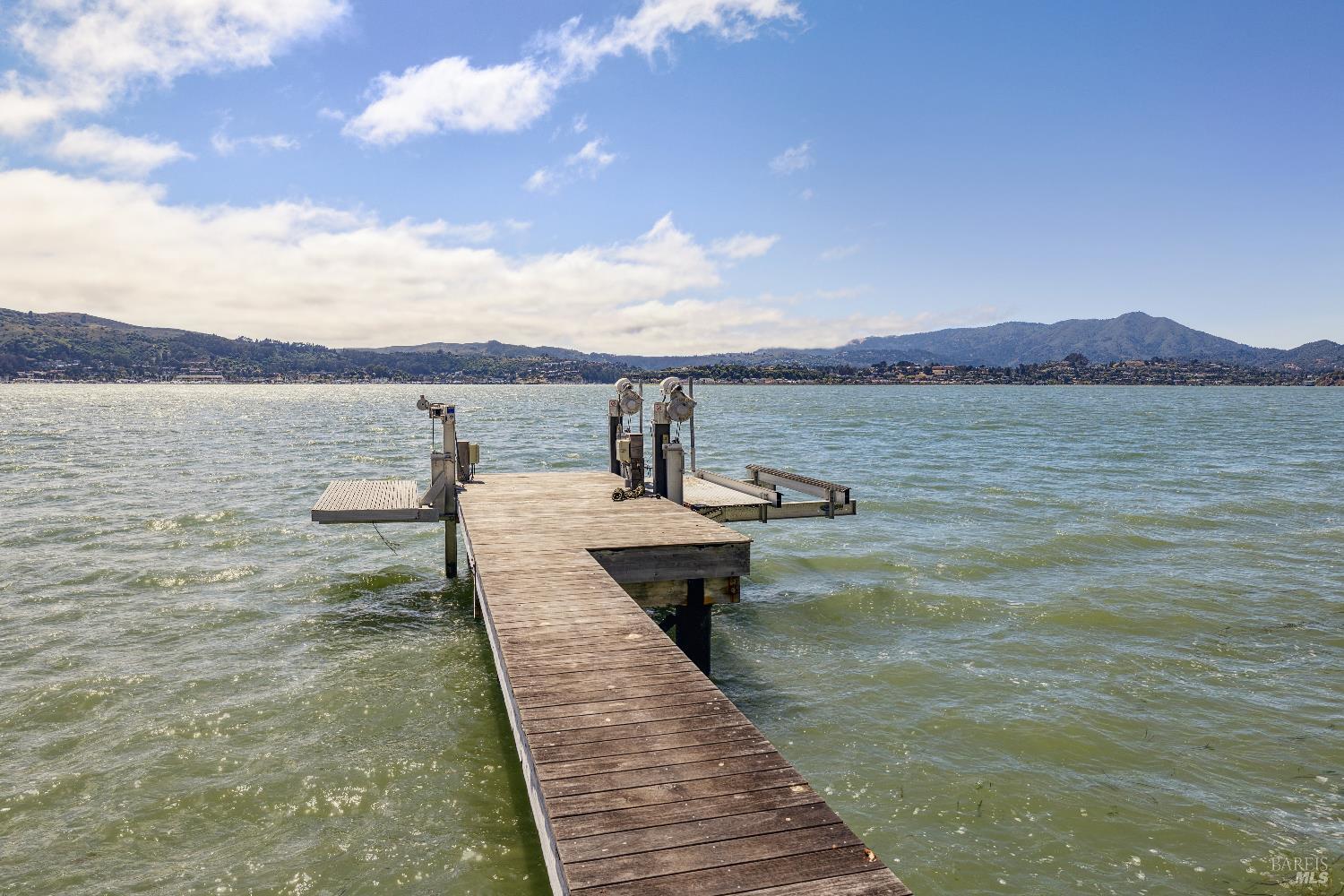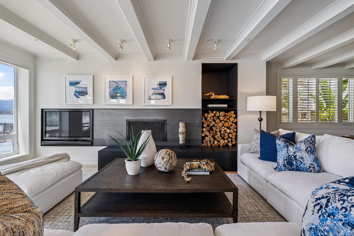 21 West Shore is one of Belvedere's most sought-after waterfront properties on Richardson Bay, with panoramic views of San Francisco, the Golden Gate Bridge, Sausalito, and Mount Tamalpais. Entered through a private gated garden, the grand entry and foyer opens to the living room with soaring ceilings and the dining room, both showcasing water views that command attention and pause. Ideal for entertaining and modern living, there is an open plan kitchen, breakfast area, family room, and game room with adjacent wet bar and wine cellar. The main level also features a view-side office/library, an ensuite bedroom, powder room, and an expansive deck leading to a private dock.