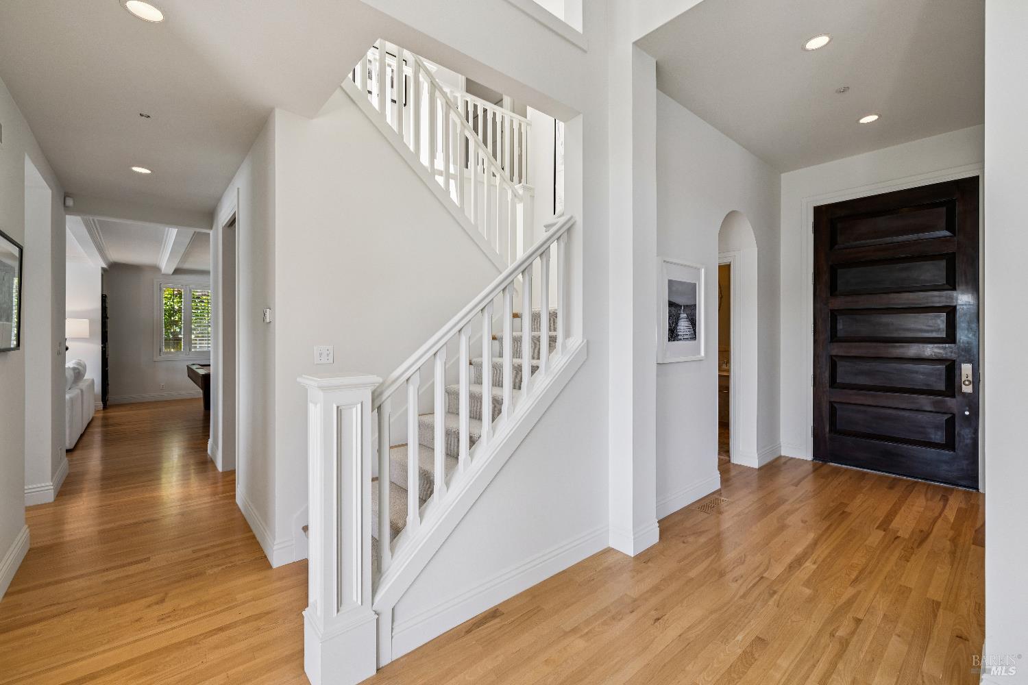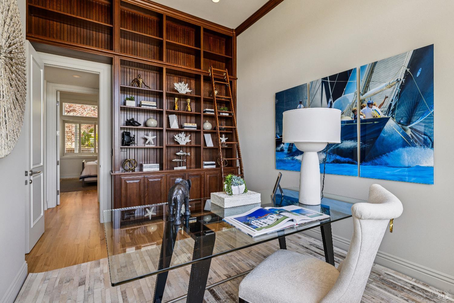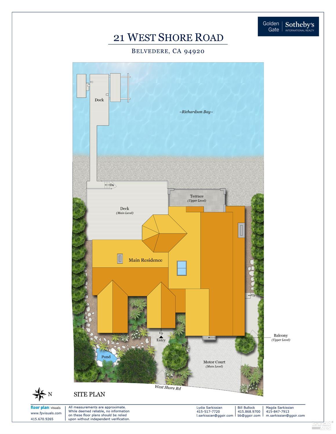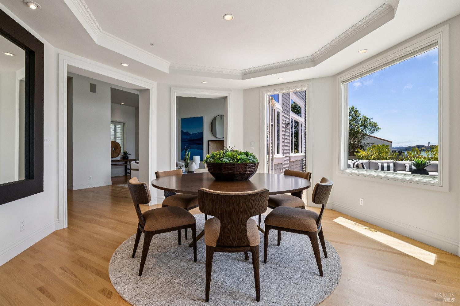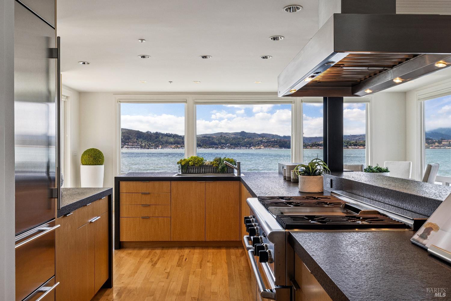 21 West Shore is one of Belvedere's most sought-after waterfront properties on Richardson Bay, with panoramic views of San Francisco, the Golden Gate Bridge, Sausalito, and Mount Tamalpais. Entered through a private gated garden, the grand entry and foyer opens to the living room with soaring ceilings and the dining room, both showcasing water views that command attention and pause. Ideal for entertaining and modern living, there is an open plan kitchen, breakfast area, family room, and game room with adjacent wet bar and wine cellar. The main level also features a view-side office/library, an ensuite bedroom, powder room, and an expansive deck leading to a private dock.