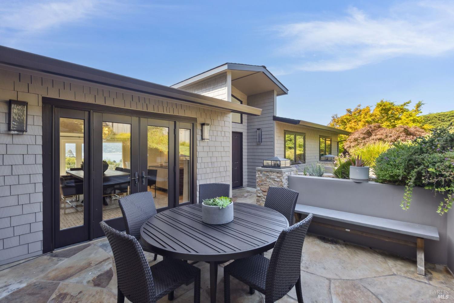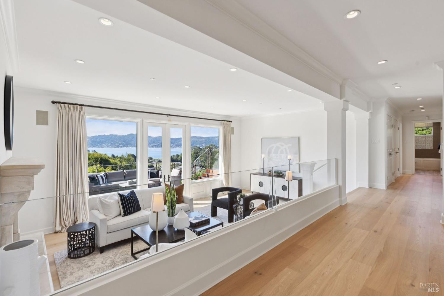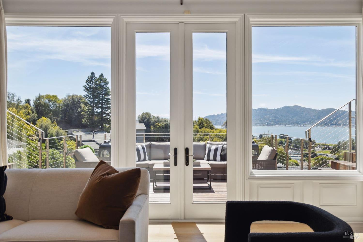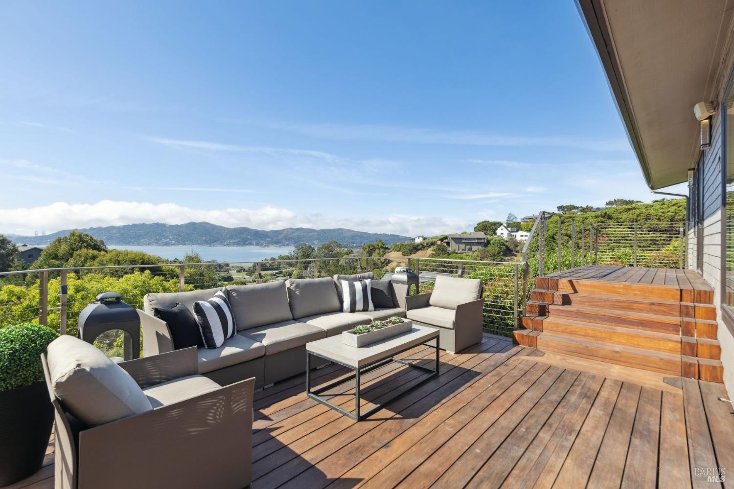 Perfectly sited on a private SW-facing cul-de-sac, this remodeled residence showcases some of the most iconic views in the Bay Area. Sweeping panoramas of the Golden Gate Bridge, Sausalito, Richardson Bay & surrounding hills provide a breathtaking backdrop.