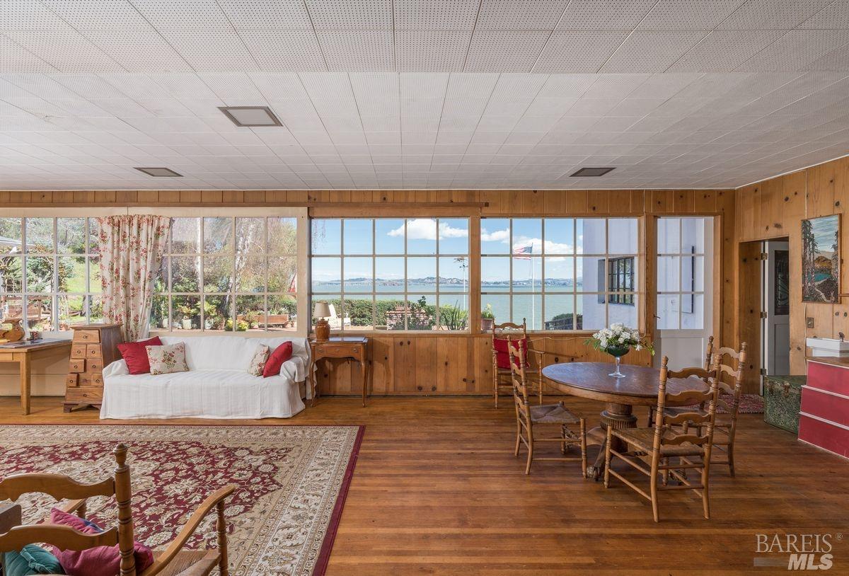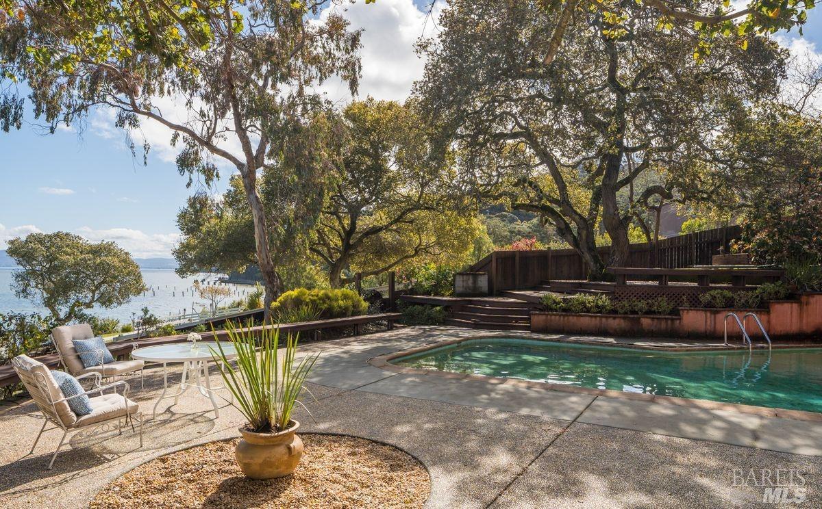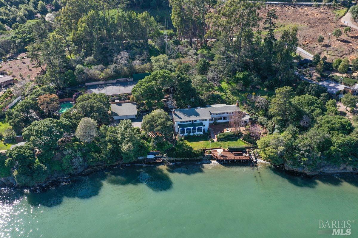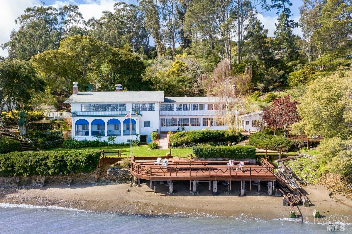 This legacy waterfront estate located on the shores of Paradise Cove offers a-once-in-a-lifetime opportunity to live the good life in Tiburon. A pioneering dream of its day circa 1936, the home was expanded upon in 1954 with an addition designed by award-winning Yugoslavian architect Theodore Bernardi, Dean of the American Institute of Architecture at U.C. Berkeley. Bernardi's timeless design increased the structure to include approx. 5,476 sq. ft. of living space, 8 bedrooms, and 5 and 1-half bathrooms. The iconic estate, located at 3900 Paradise Drive, has hit the market for the first time in its history.Located on approx. 9.7 acres, the parklike grounds offer the utmost privacy & include a pool, sports court, a bay view level lawn, sandy beach, waterfront sun lounge deck, & a boat way. The home is approached via a long, gated drive which gracefully curves down to a large motor court, where the home commands attention in its stature & prime positioning along the waterfront. The home has two levels featuring grand-scale living, entertaining & dining areas, all enjoying unobstructed waterfront views & vistas of the Berkeley Hills. Additional highlights include a detached 3-car garage, craftsman's workshop, ample storage, an upper & lower stable, garden areas and a cellar.