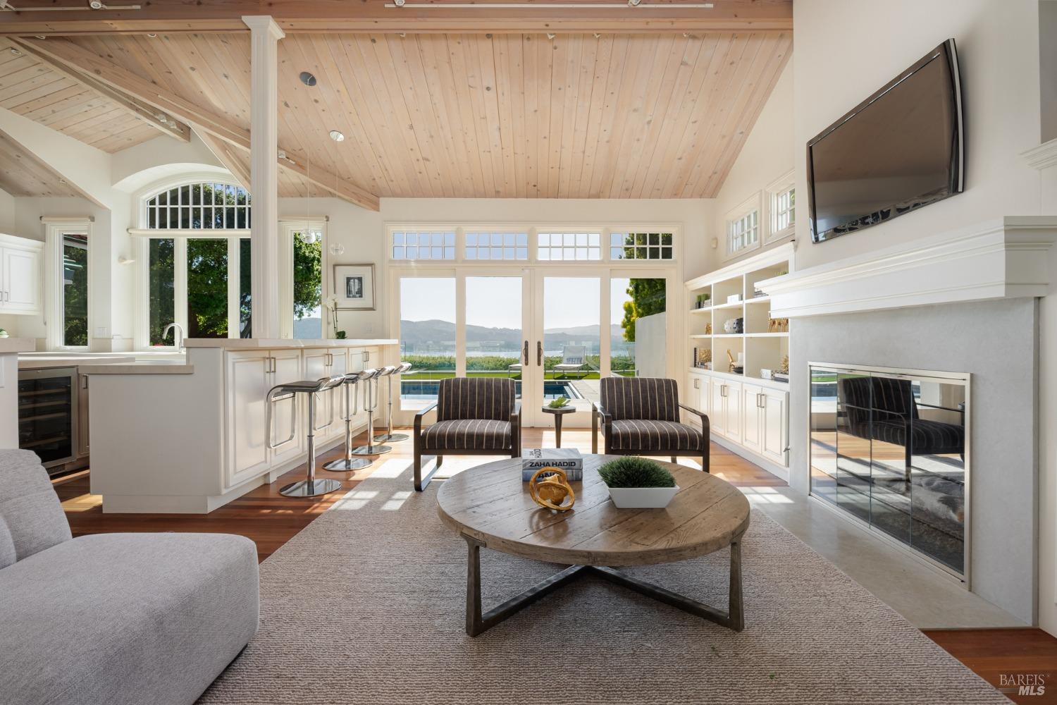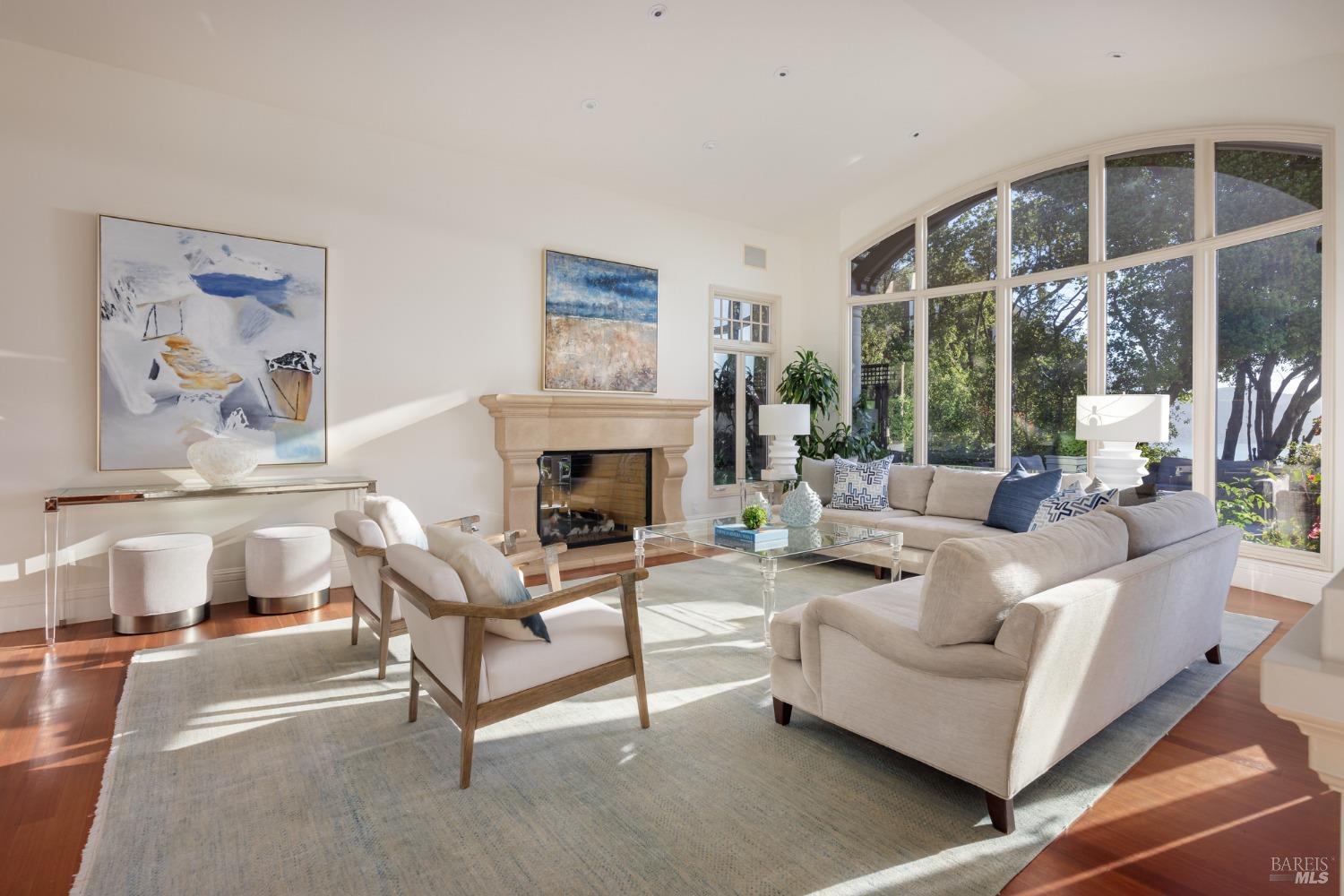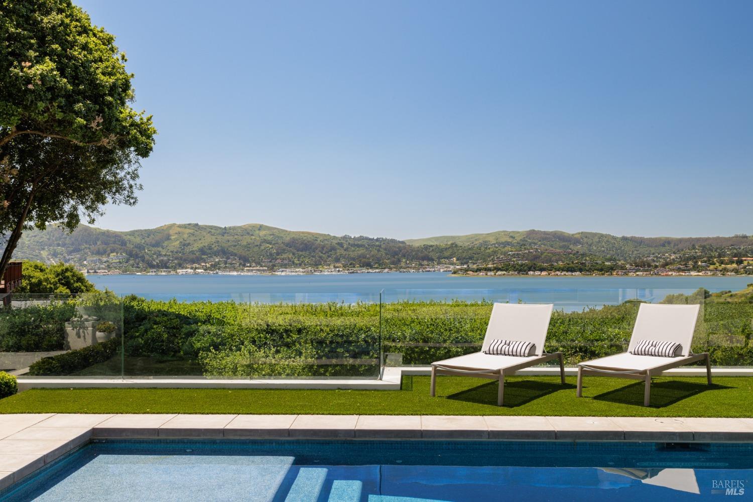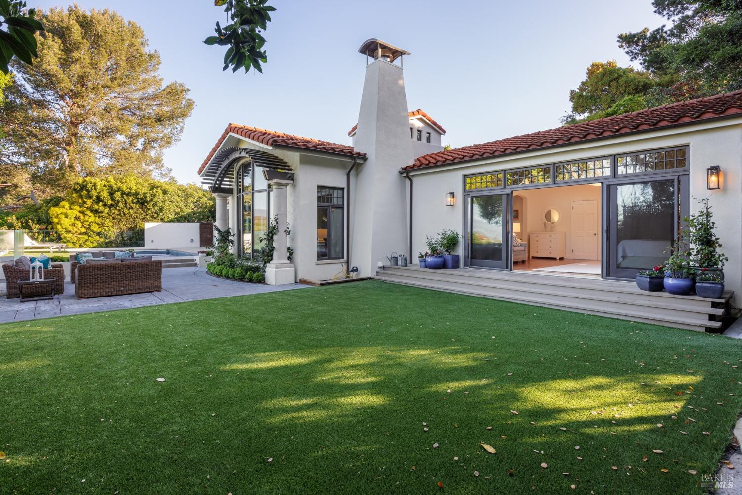 Experience the allure of this idyllic single story retreat, showcasing outstanding resort style living spaces, and mesmerizing views of the bay,Sausalito, and the rolling hills of Marin. Enriched by a seamless blend of Santa Barbara and Montecito influences, this residence exudes timeless beauty and embodies the coastal ambiance synonymous with the seaside lifestyle of the Tiburon Peninsula. Picturesque grounds with new pool and spa, entertainment terraces, turf lawn, pristine landscaping, and a gated front courtyard with lush lawns. Arched doorways & windows, high ceilings, Brazilian cherry hardwood flooring, and wood beamed ceilings. The elegant grand-scale living room features high ceilings, a fireplace, access to the outdoors, and an impressive floor-to-ceiling bay window that captures picturesque views. Stunning kitchen with center island, an extended breakfast bar, built-in desk, and high end appliances. Adjacent family room with stunning views, and access to the pool and backyard. Nestled in a private wing, the primary suite boasts a walk-in closet with a custom wardrobe system, vaulted ceilings, a lavish primary bathroom, and glass doors opening to the outdoors. Two en-suite bedrooms, a recreation room (or 4th bedroom), bonus room with a full bathroom, and a dual office.