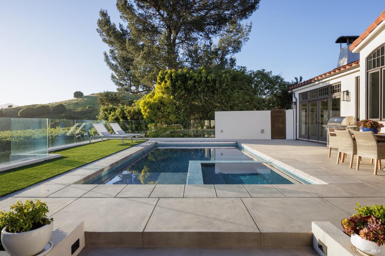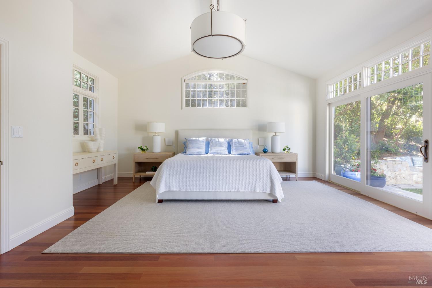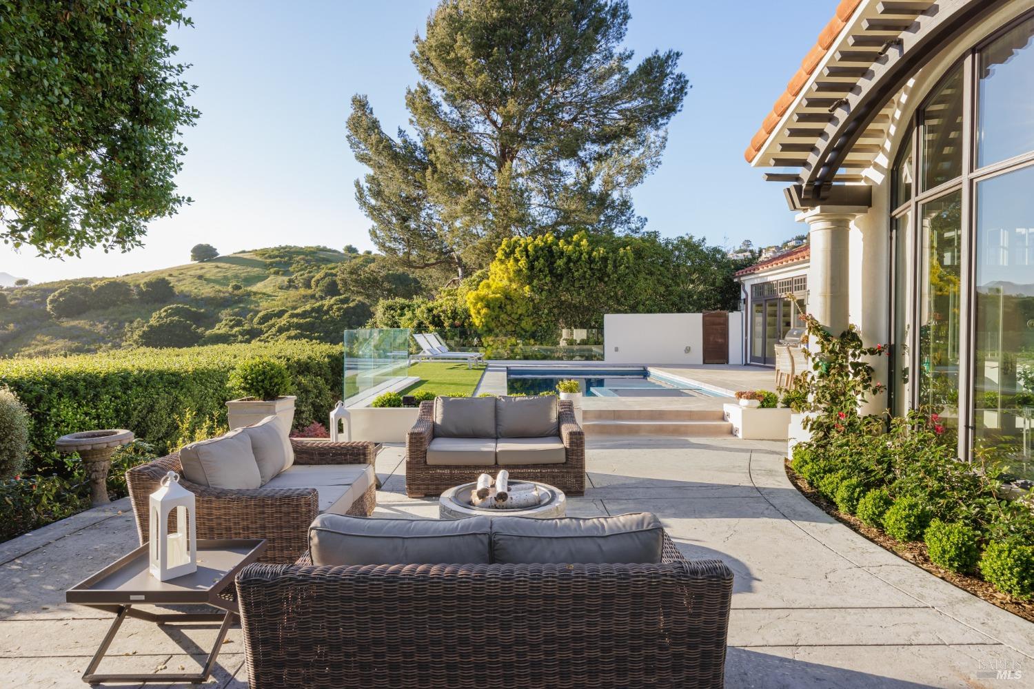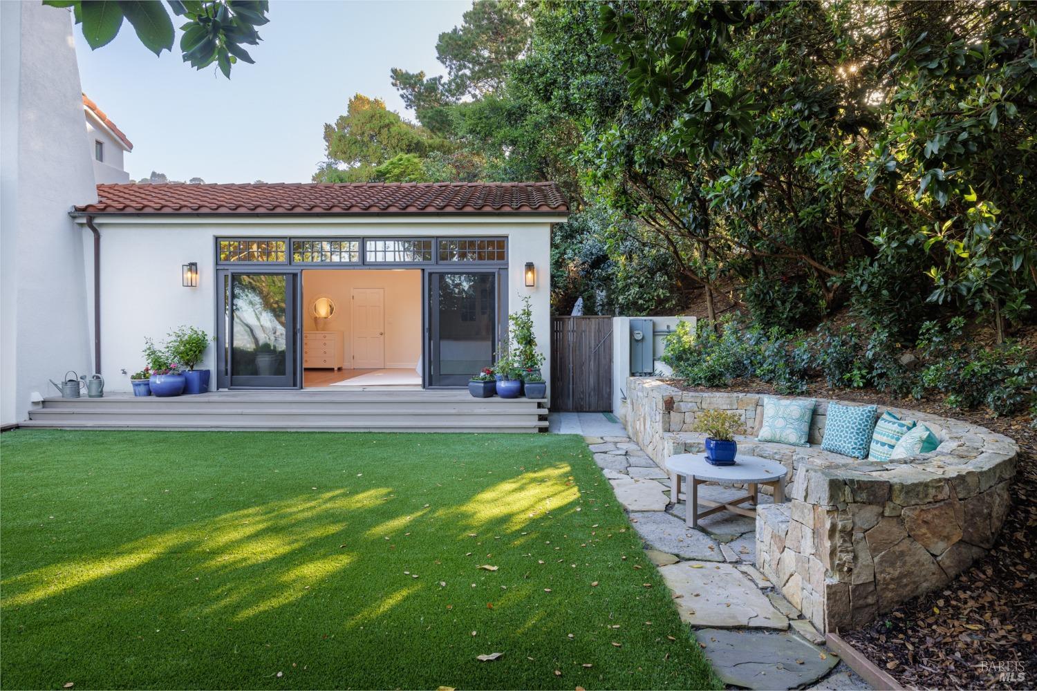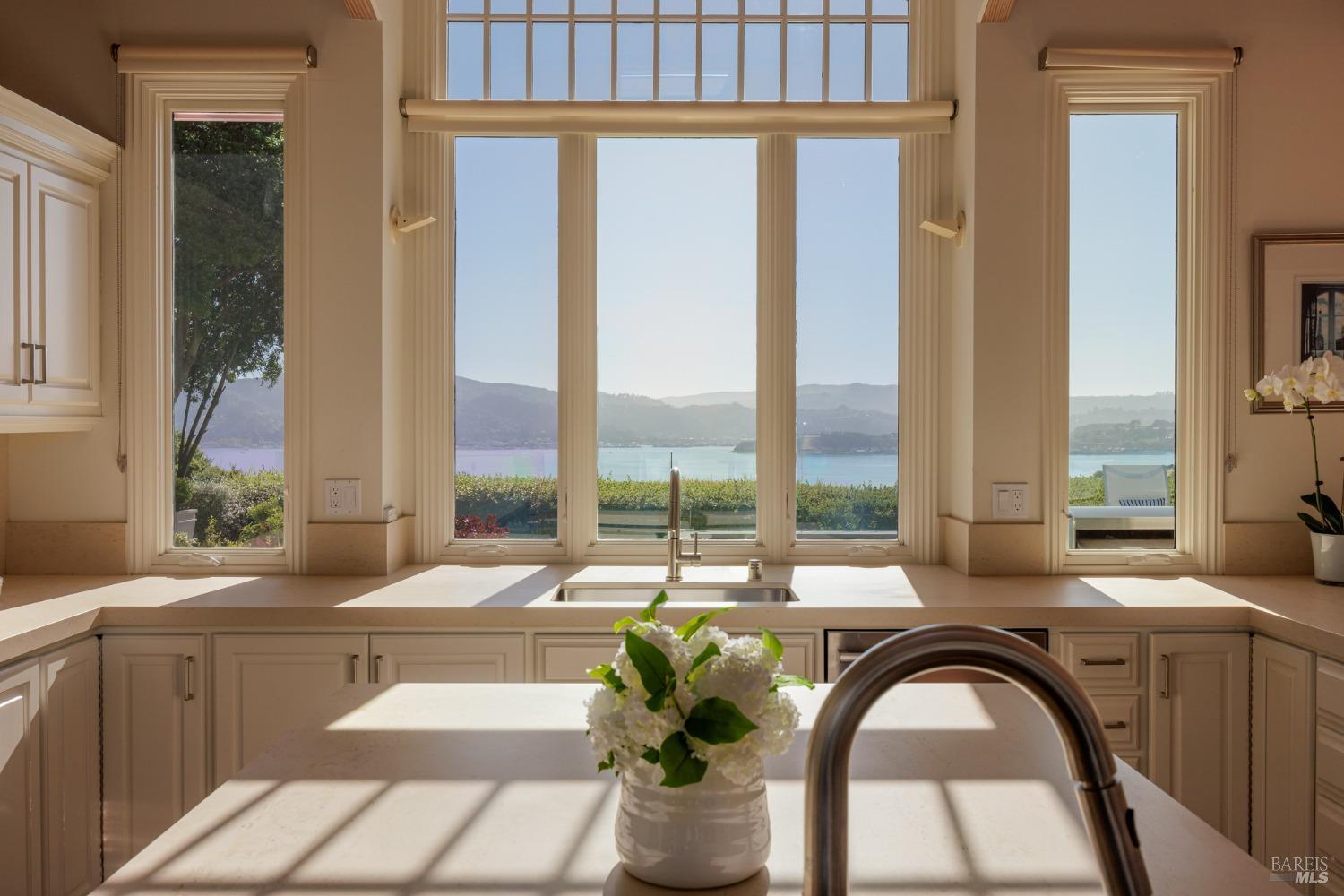 Experience the allure of this idyllic single story retreat, showcasing outstanding resort style living spaces, and mesmerizing views of the bay,Sausalito, and the rolling hills of Marin. Enriched by a seamless blend of Santa Barbara and Montecito influences, this residence exudes timeless beauty and embodies the coastal ambiance synonymous with the seaside lifestyle of the Tiburon Peninsula. Picturesque grounds with new pool and spa, entertainment terraces, turf lawn, pristine landscaping, and a gated front courtyard with lush lawns. Arched doorways & windows, high ceilings, Brazilian cherry hardwood flooring, and wood beamed ceilings. The elegant grand-scale living room features high ceilings, a fireplace, access to the outdoors, and an impressive floor-to-ceiling bay window that captures picturesque views. Stunning kitchen with center island, an extended breakfast bar, built-in desk, and high end appliances. Adjacent family room with stunning views, and access to the pool and backyard. Nestled in a private wing, the primary suite boasts a walk-in closet with a custom wardrobe system, vaulted ceilings, a lavish primary bathroom, and glass doors opening to the outdoors. Two en-suite bedrooms, a recreation room (or 4th bedroom), bonus room with a full bathroom, and a dual office.