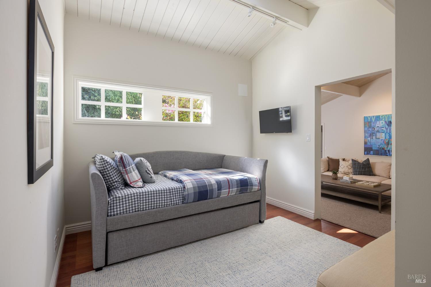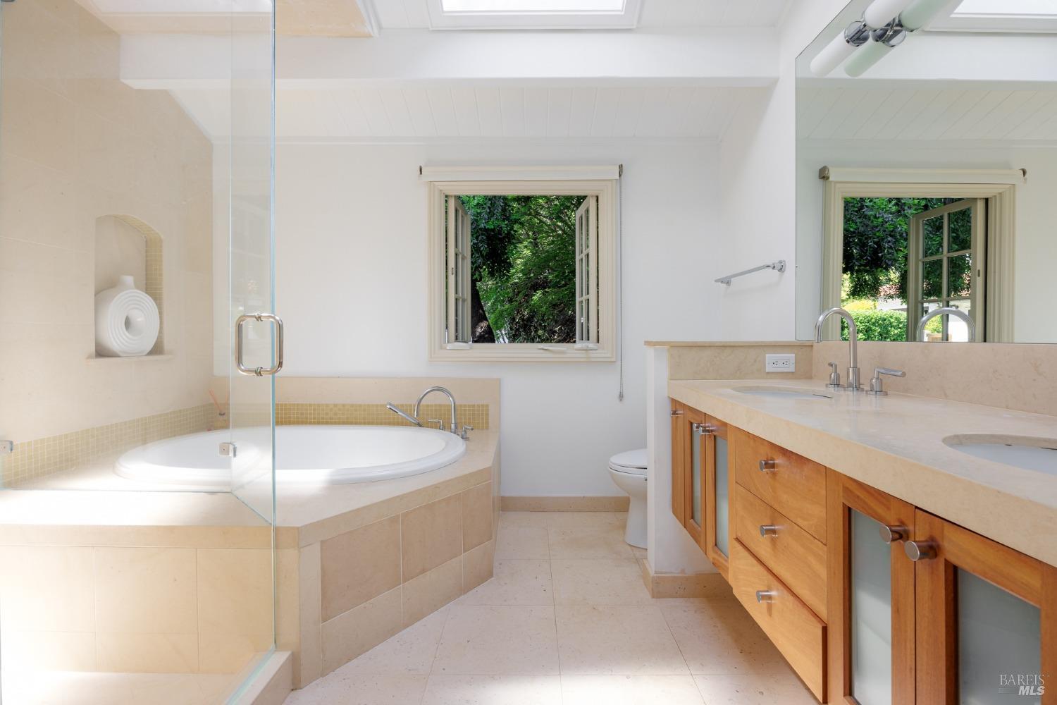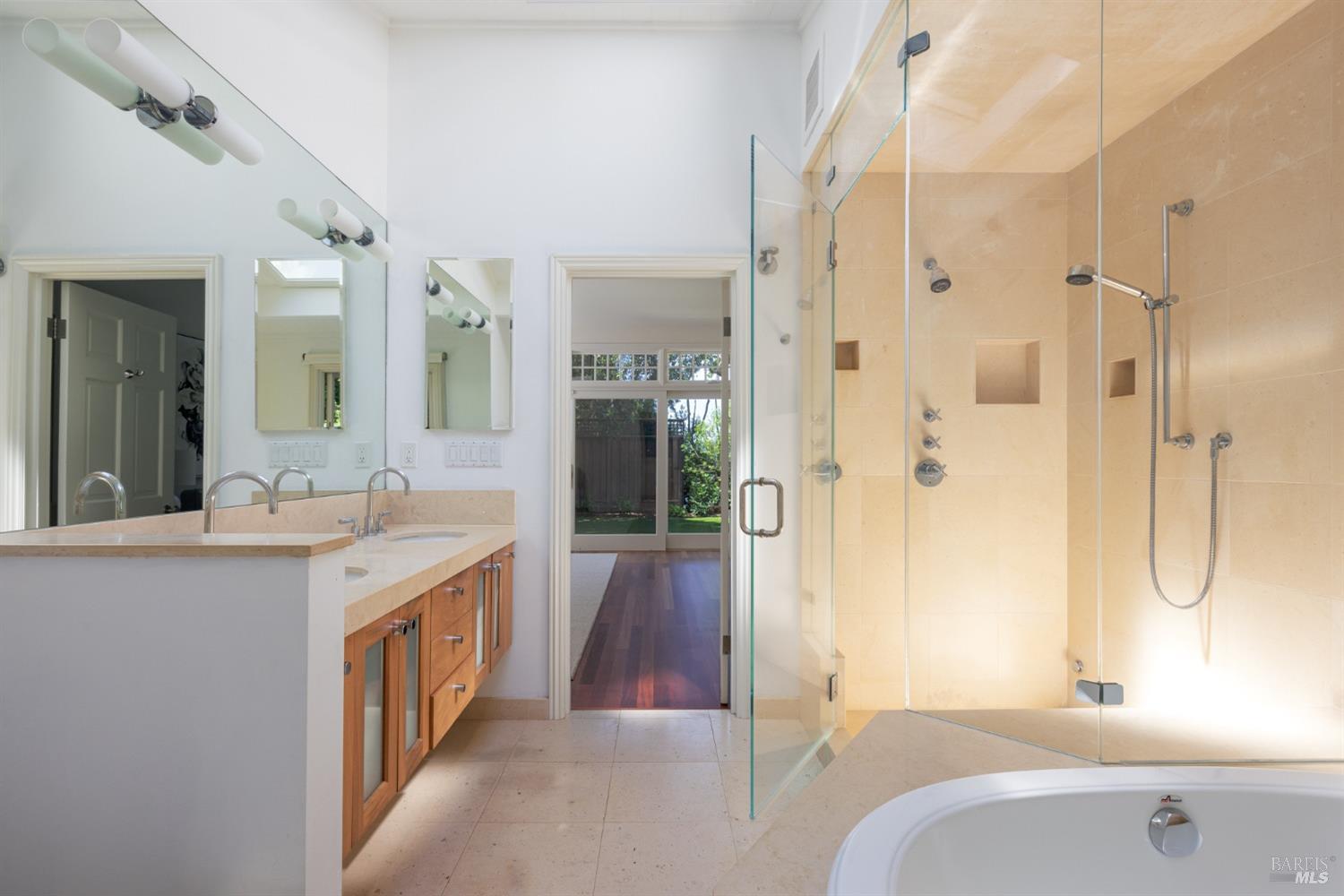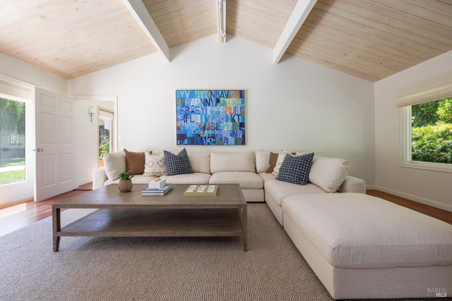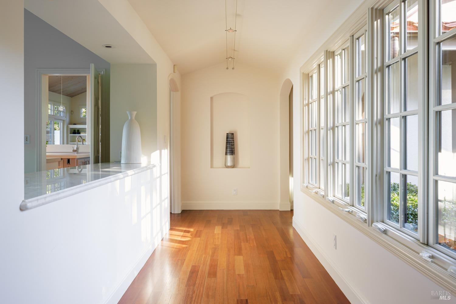 Experience the allure of this idyllic single story retreat, showcasing outstanding resort style living spaces, and mesmerizing views of the bay,Sausalito, and the rolling hills of Marin. Enriched by a seamless blend of Santa Barbara and Montecito influences, this residence exudes timeless beauty and embodies the coastal ambiance synonymous with the seaside lifestyle of the Tiburon Peninsula. Picturesque grounds with new pool and spa, entertainment terraces, turf lawn, pristine landscaping, and a gated front courtyard with lush lawns. Arched doorways & windows, high ceilings, Brazilian cherry hardwood flooring, and wood beamed ceilings. The elegant grand-scale living room features high ceilings, a fireplace, access to the outdoors, and an impressive floor-to-ceiling bay window that captures picturesque views. Stunning kitchen with center island, an extended breakfast bar, built-in desk, and high end appliances. Adjacent family room with stunning views, and access to the pool and backyard. Nestled in a private wing, the primary suite boasts a walk-in closet with a custom wardrobe system, vaulted ceilings, a lavish primary bathroom, and glass doors opening to the outdoors. Two en-suite bedrooms, a recreation room (or 4th bedroom), bonus room with a full bathroom, and a dual office.